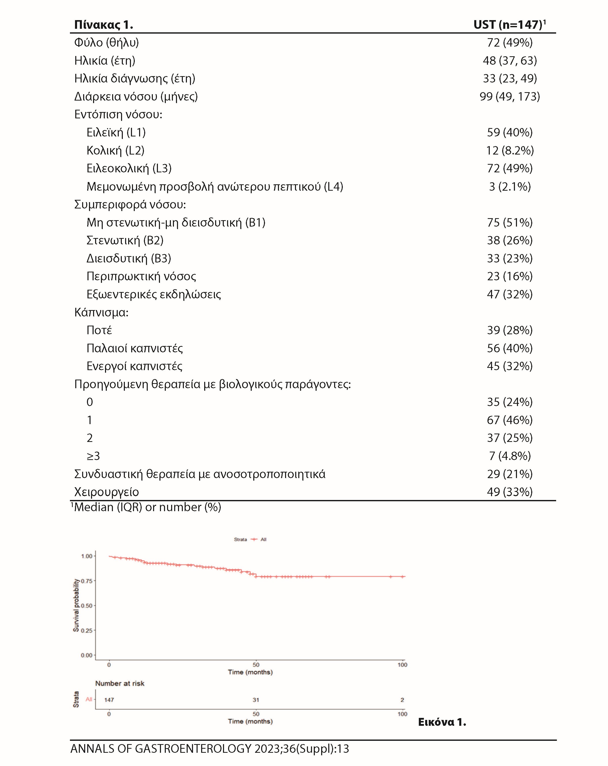 Δημοσίευση: Επίδραση της εντόπισης και της συμπεριφοράς της νόσου Crohn στη διατήρηση της θεραπείας με Ustekinumab: μια πολυκεντρική αναδρομική μελέτη παρατήρησης