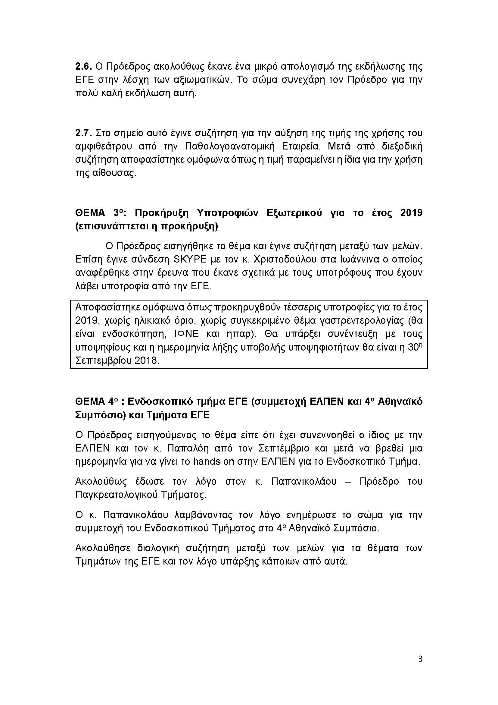 ΠΑΡΟΝΤΕΣ: άπαντες καθώς επίσης και ο κ. Μ. Γαλανόπουλος – Αντιπρόεδρος Τριμελούς Επιτροπής Δοκίμων Μελών, ο κ. Ι. Παπανικολάου ως Πρόεδρος του Παγκρεατολογικού Τμήματος και ο πρώην πρόεδρος του ΔΣ κ. Σ. Μιχόπουλος.