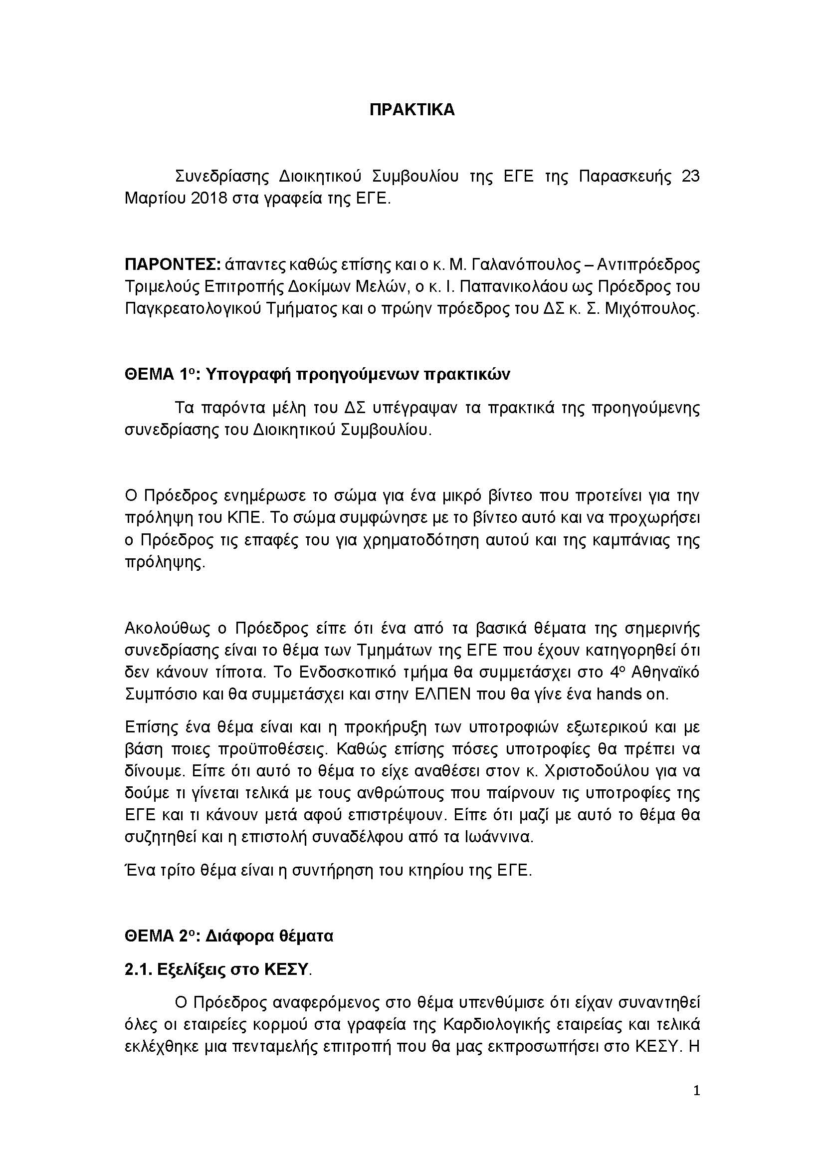 Πρακτικά Συνεδρίασης 23ης Μαρτίου 2018