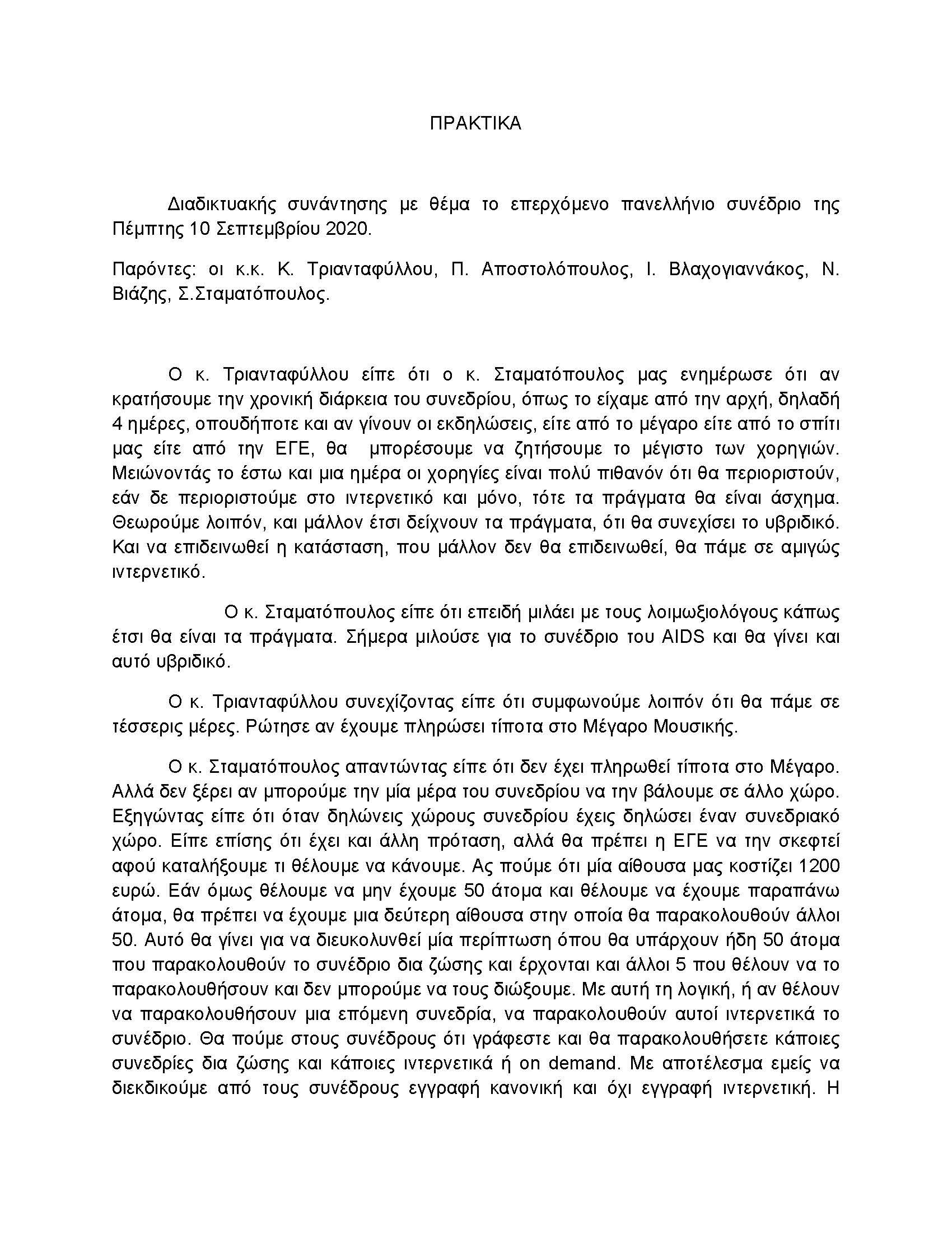 Πρακτικά Διαδικτυακής Συνάντησης 10ης Σεπτεμβρίου 2020