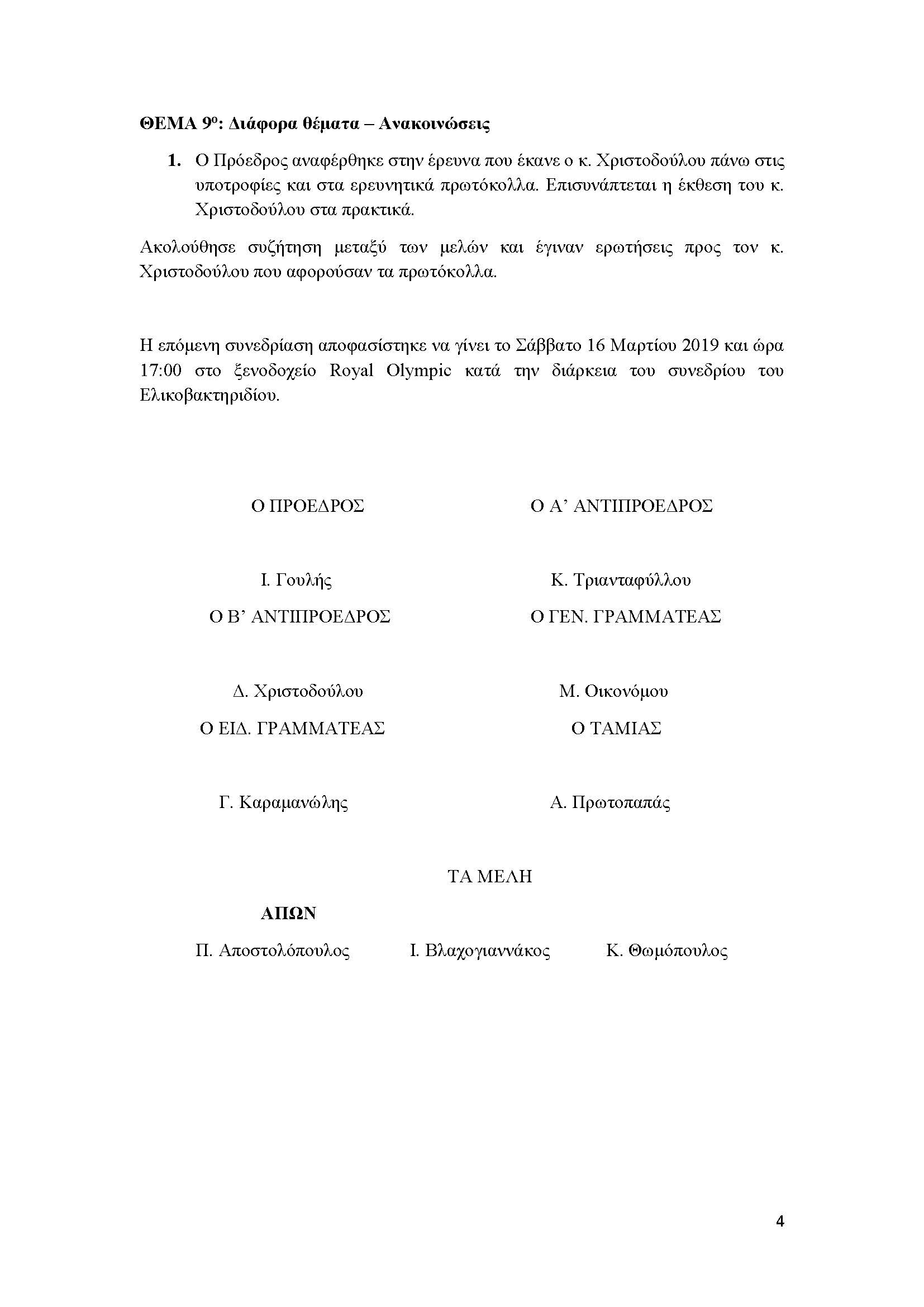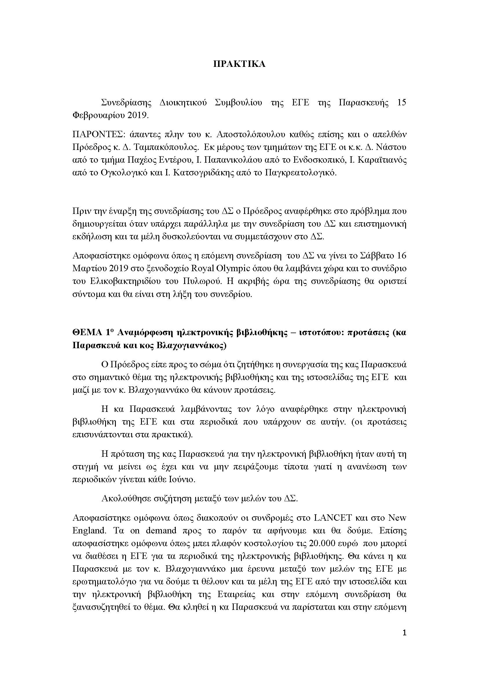 Πρακτικά Συνεδρίασης 15ης Φεβρουαρίου 2019