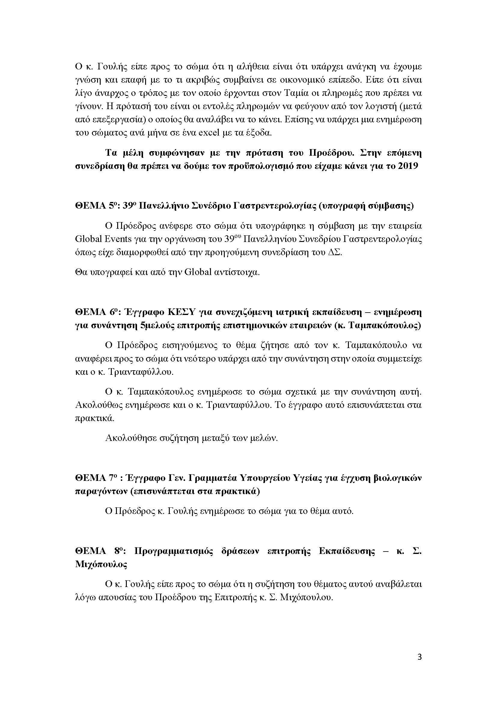 ΠΑΡΟΝΤΕΣ: άπαντες πλην του κ. Αποστολόπουλου καθώς επίσης και ο απελθών Πρόεδρος κ. Δ. Ταμπακόπουλος. Εκ μέρους των τμημάτων της ΕΓΕ οι κ.κ. Δ. Νάστου από το τμήμα Παχέος Εντέρου, Ι. Παπανικολάου από το Ενδοσκοπικό, Ι. Καραϊτιανός από το Ογκολογικό και Ι. Κατσογριδάκης από το Παγκρεατολογικό.