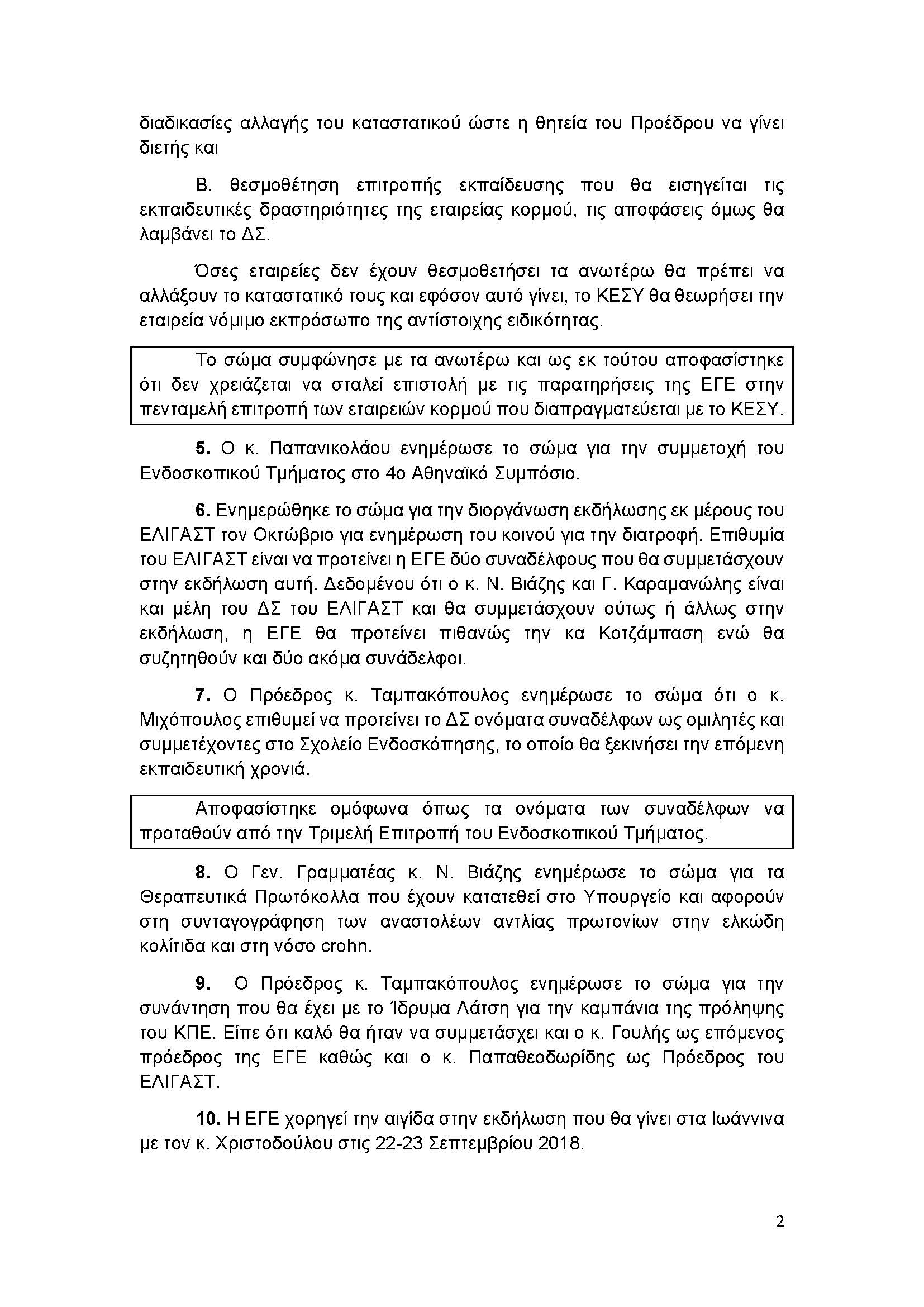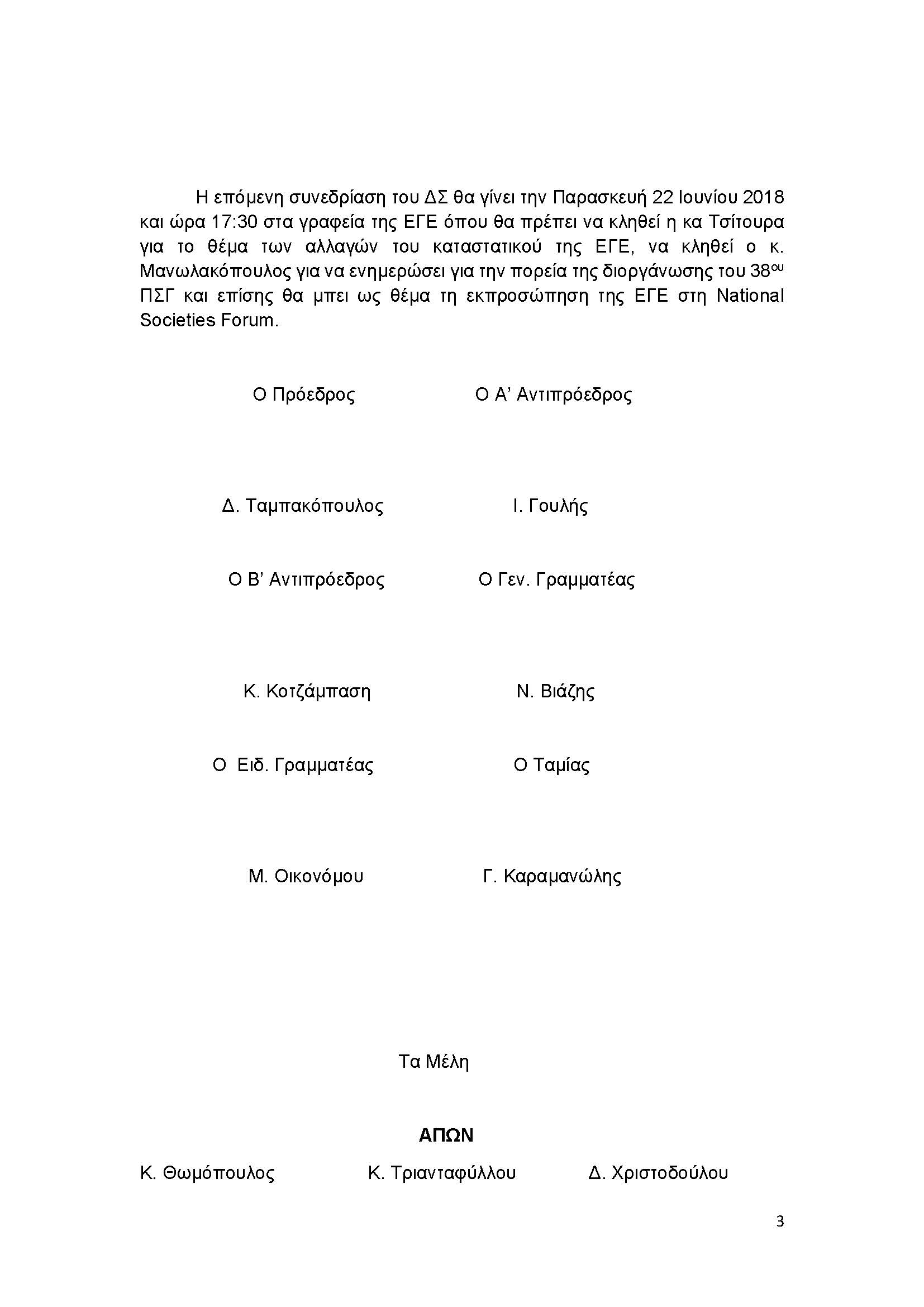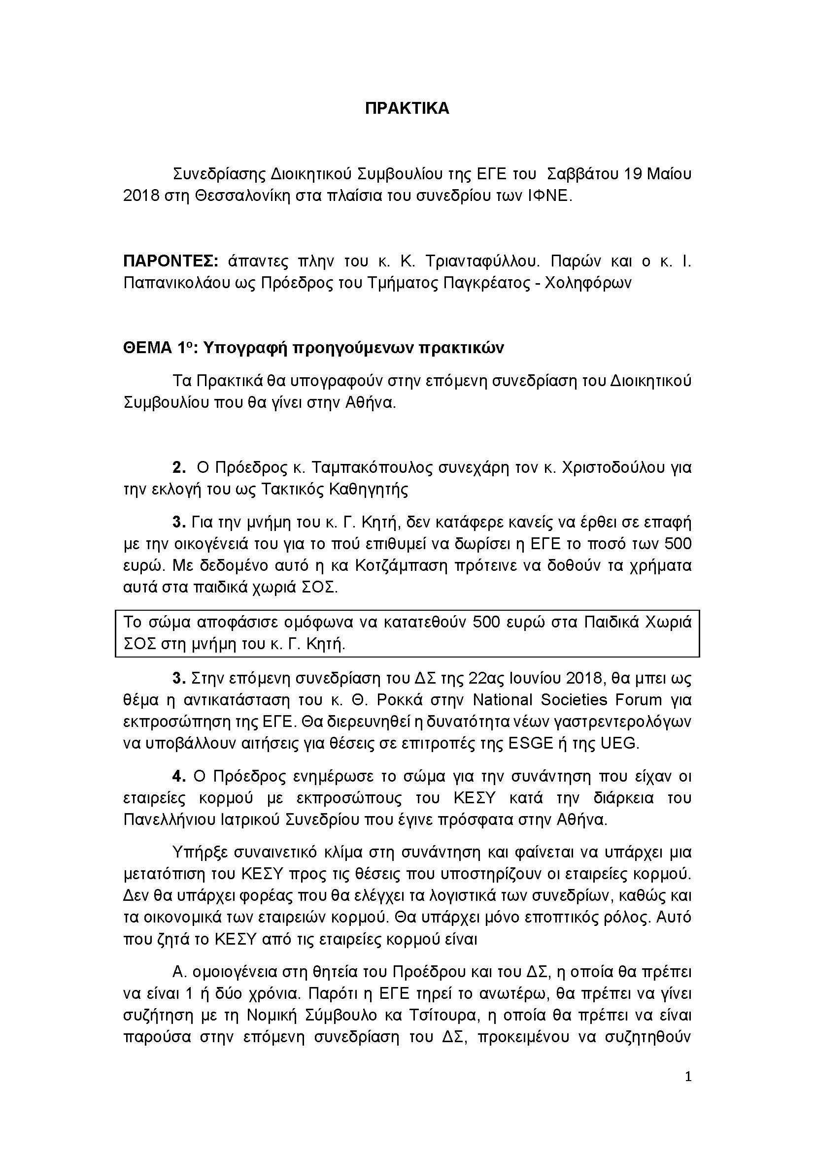 Πρακτικά Συνεδρίασης 19ης Μαΐου 2018 στα πλαίσια του συνεδρίου των ΙΦΝΕ