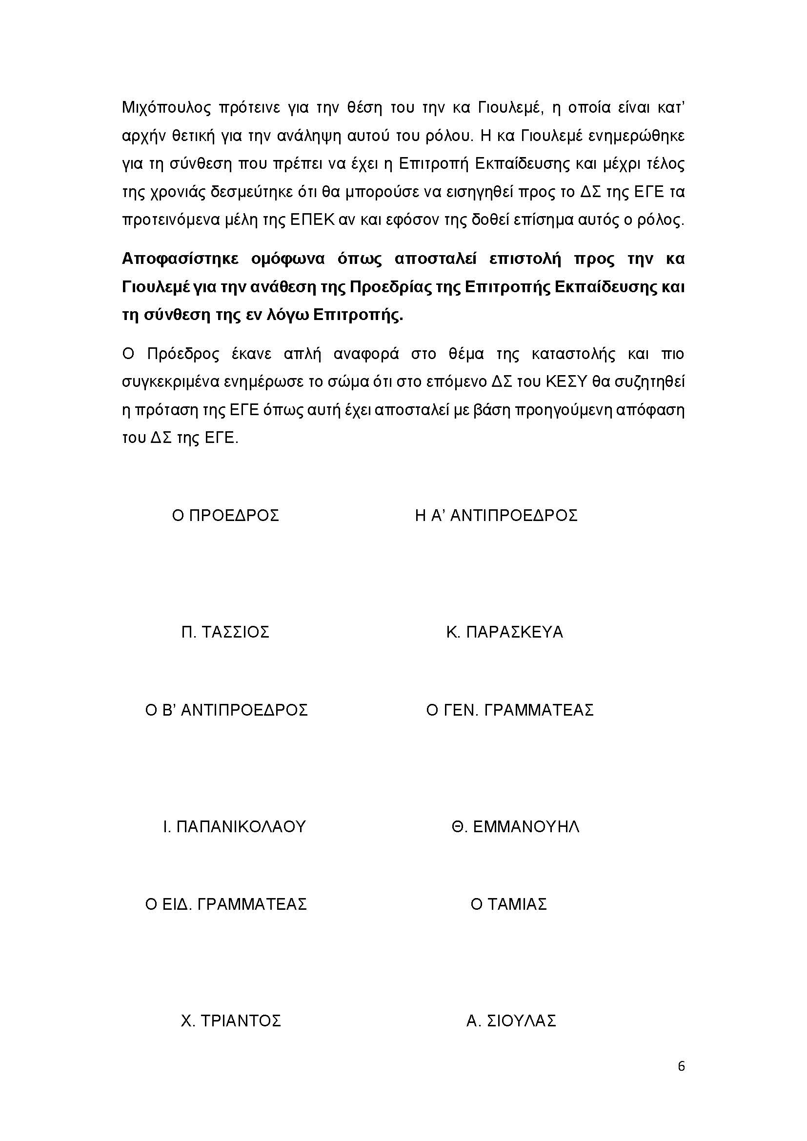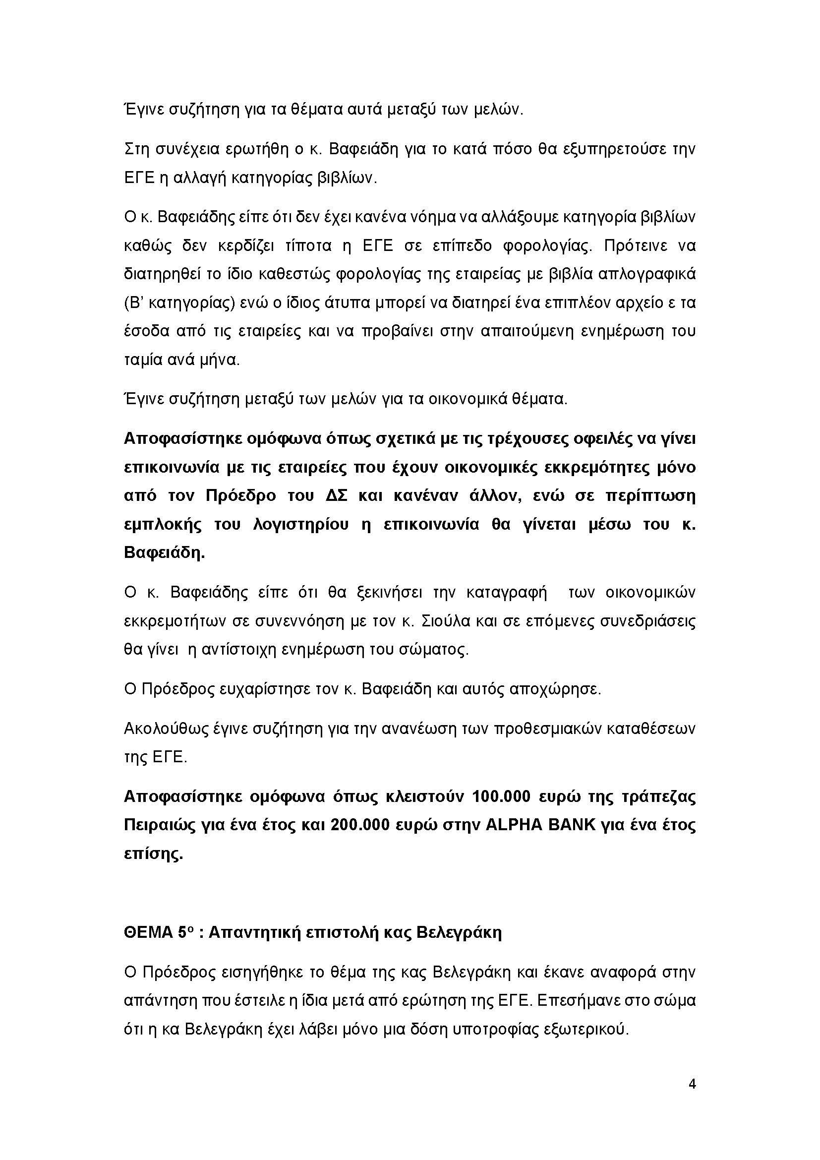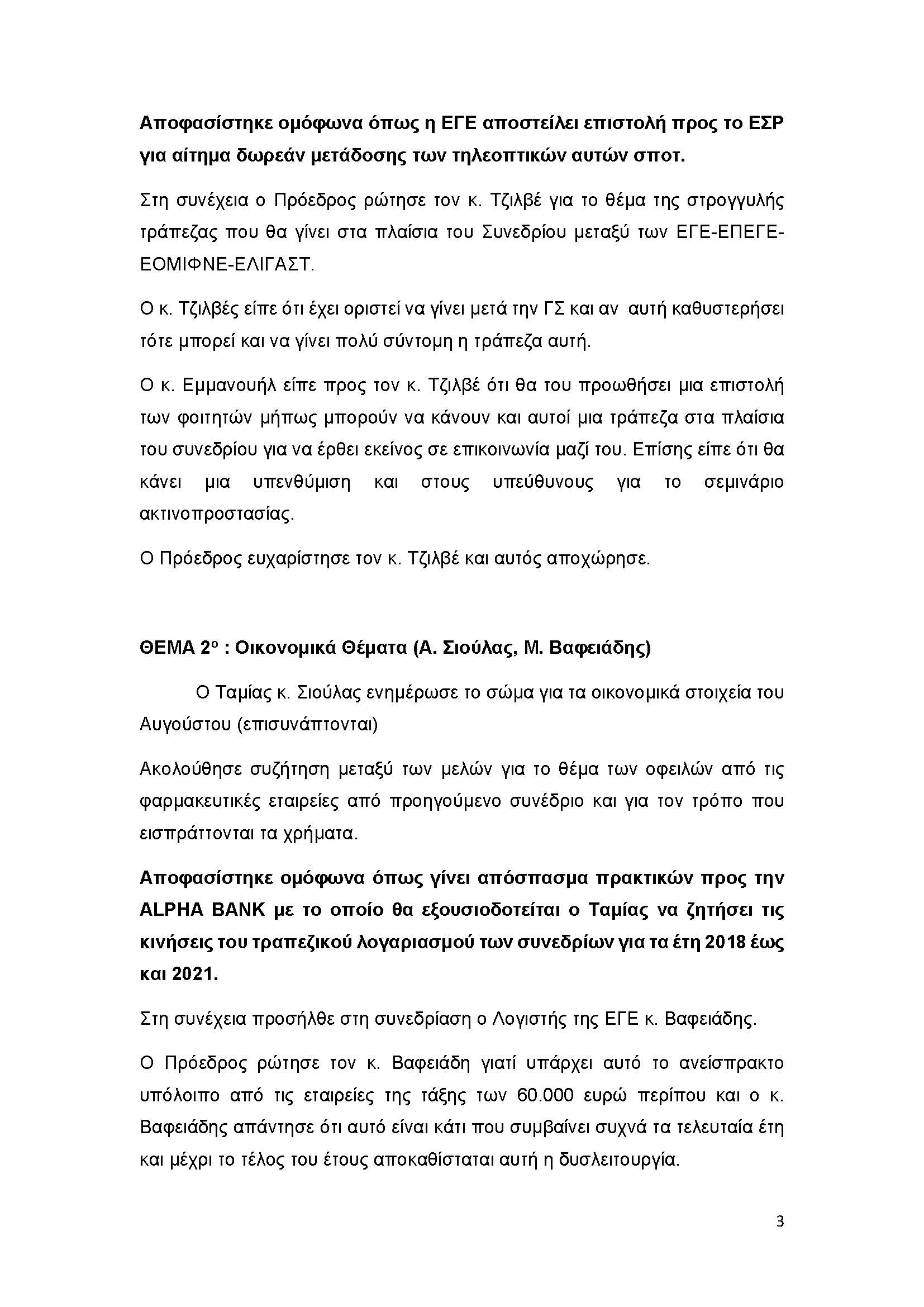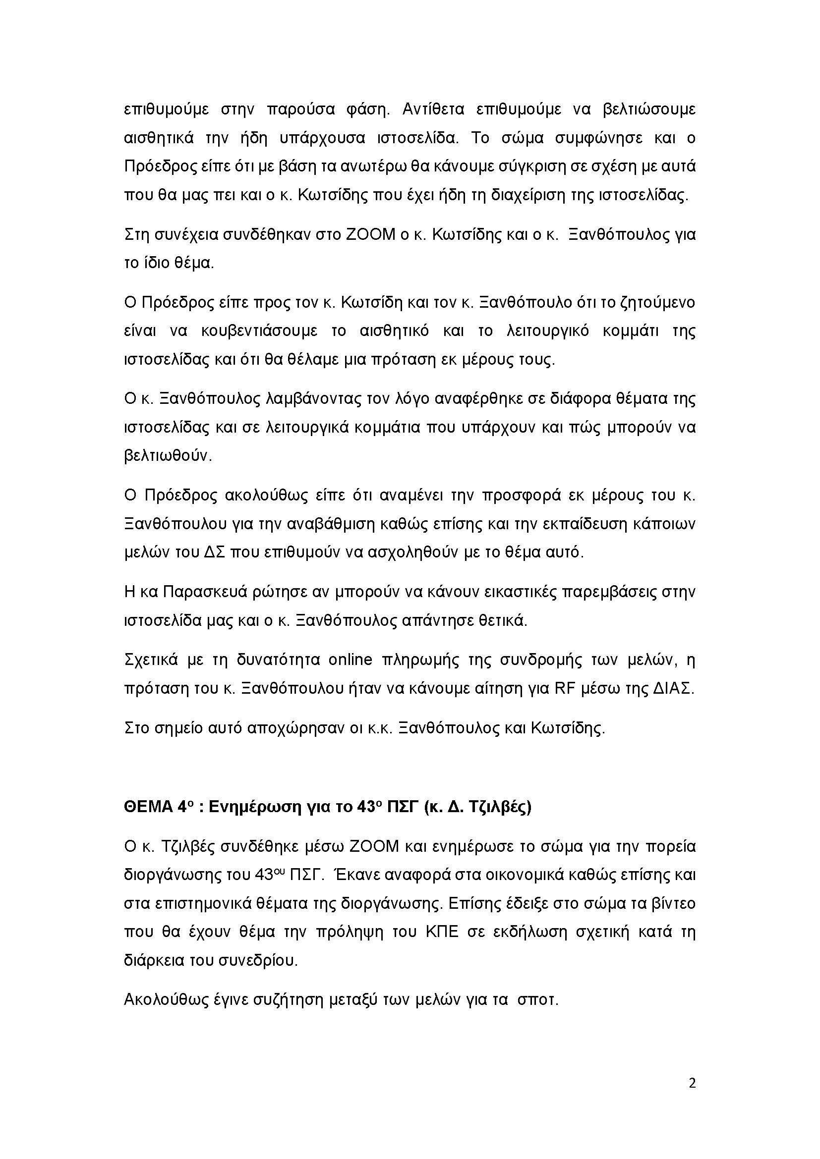 ΠΑΡΟΝΤΕΣ: άπαντα τα μέλη του ΔΣ. Παρών ήταν και ο κ. Μ. Βαφειάδης – Λογιστής. Επίσης συνδέθηκε ο κ. Τριαμπόνιας και ο κ. Δ. Τζιλβές.