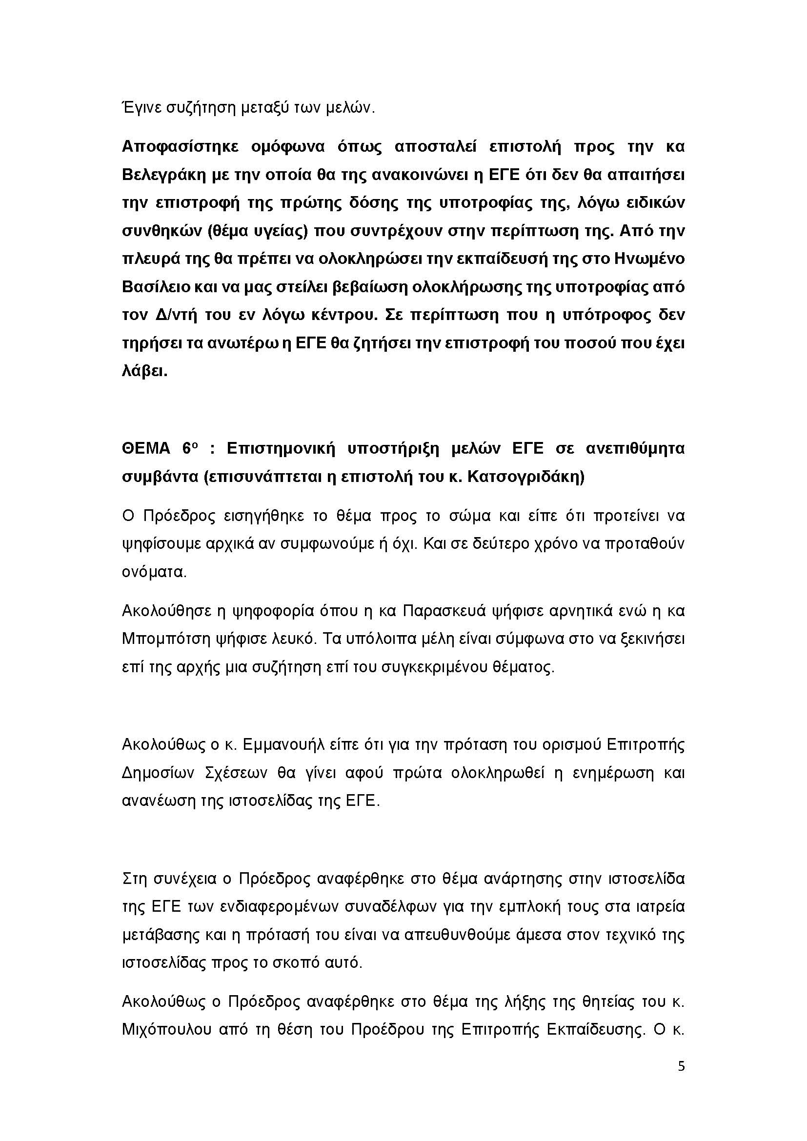 ΘΕΜΑ 5ο : Απαντητική επιστολή κας Βελεγράκη