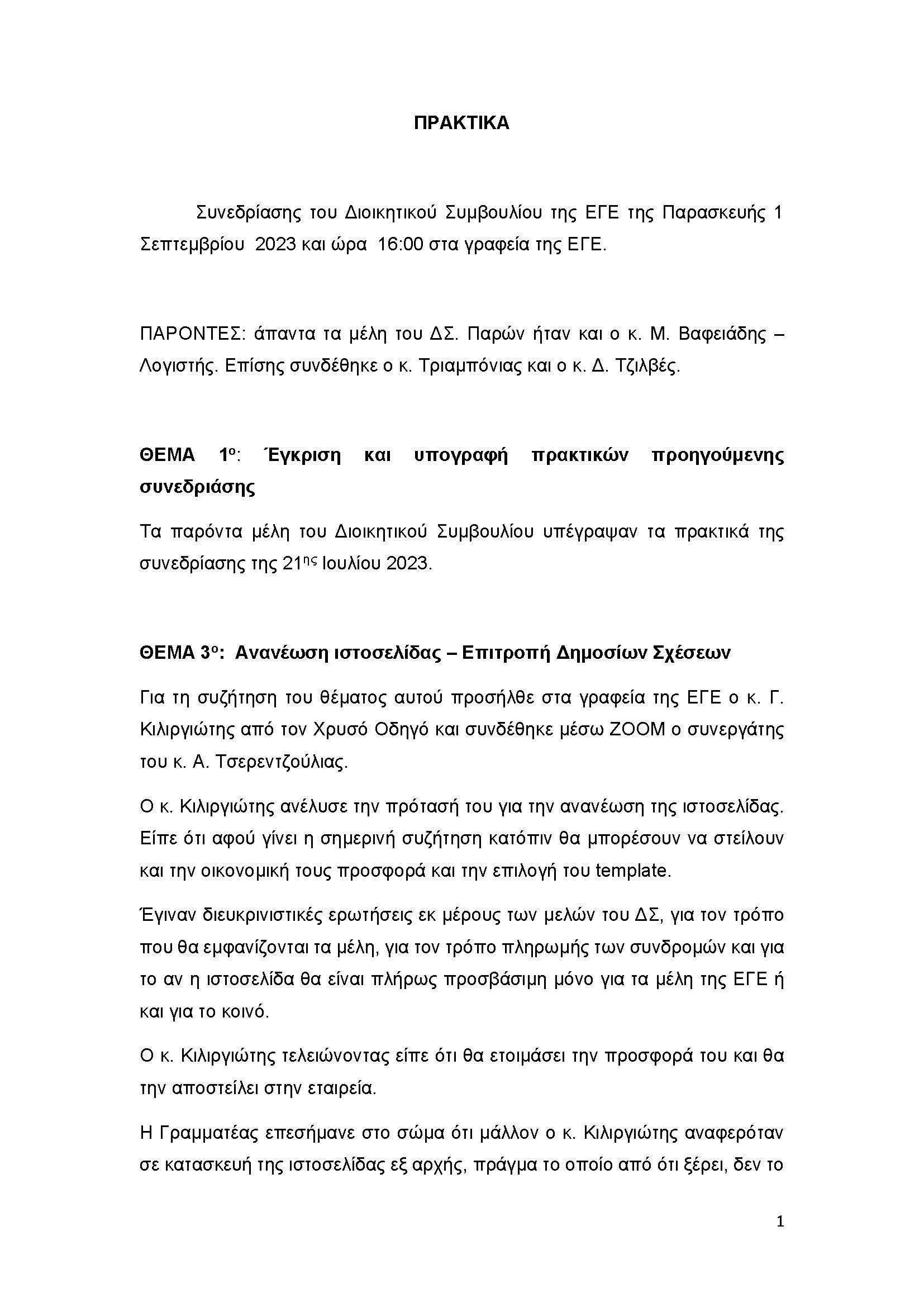 Πρακτικά Συνεδρίασης 1ης Σεπτεμβρίου 2023