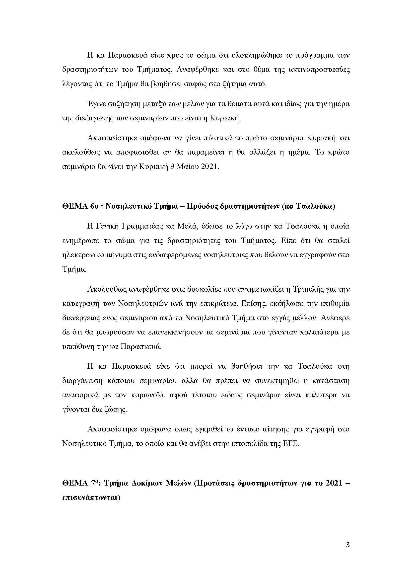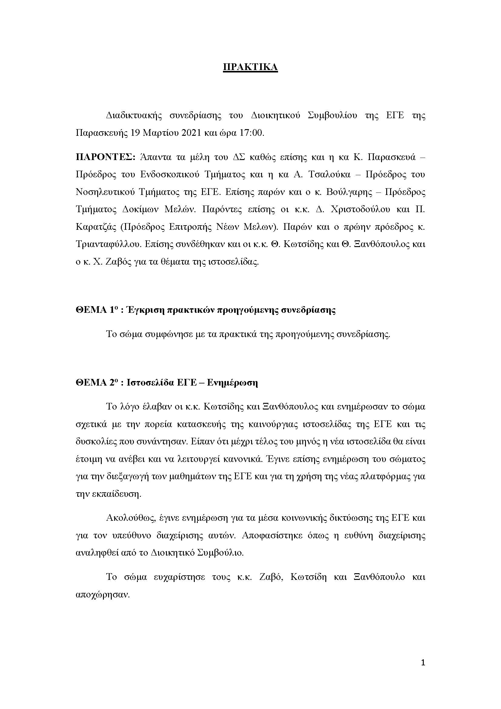 Πρακτικά Διαδικτυακής Συνεδρίασης 19ης Μαρτίου 2021