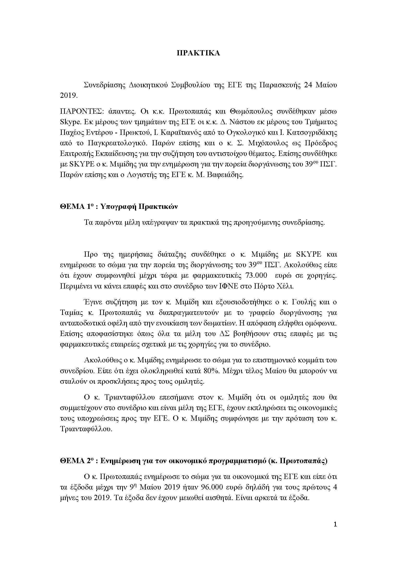 Πρακτικά Συνεδρίασης 24ης Μαΐου 2019