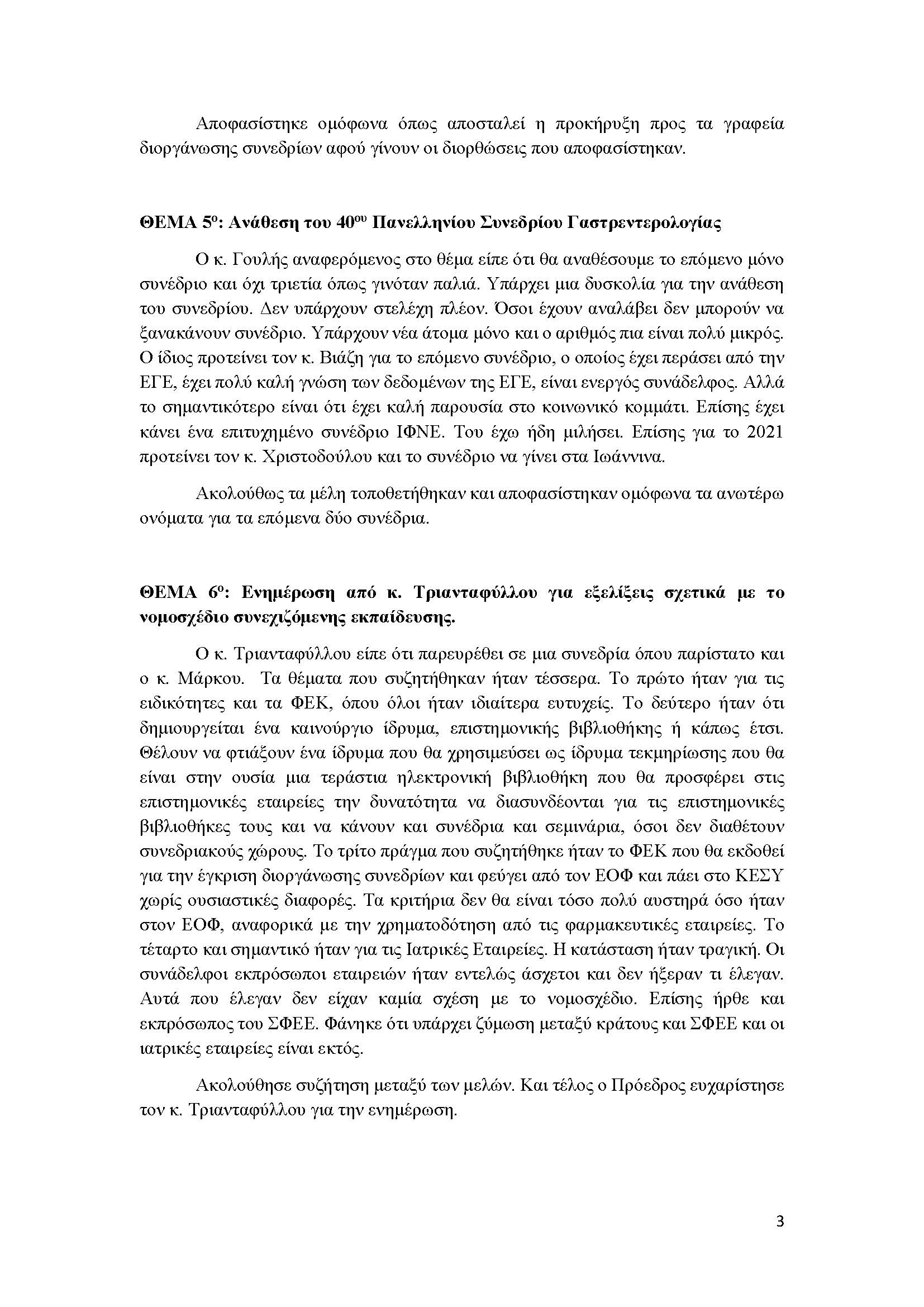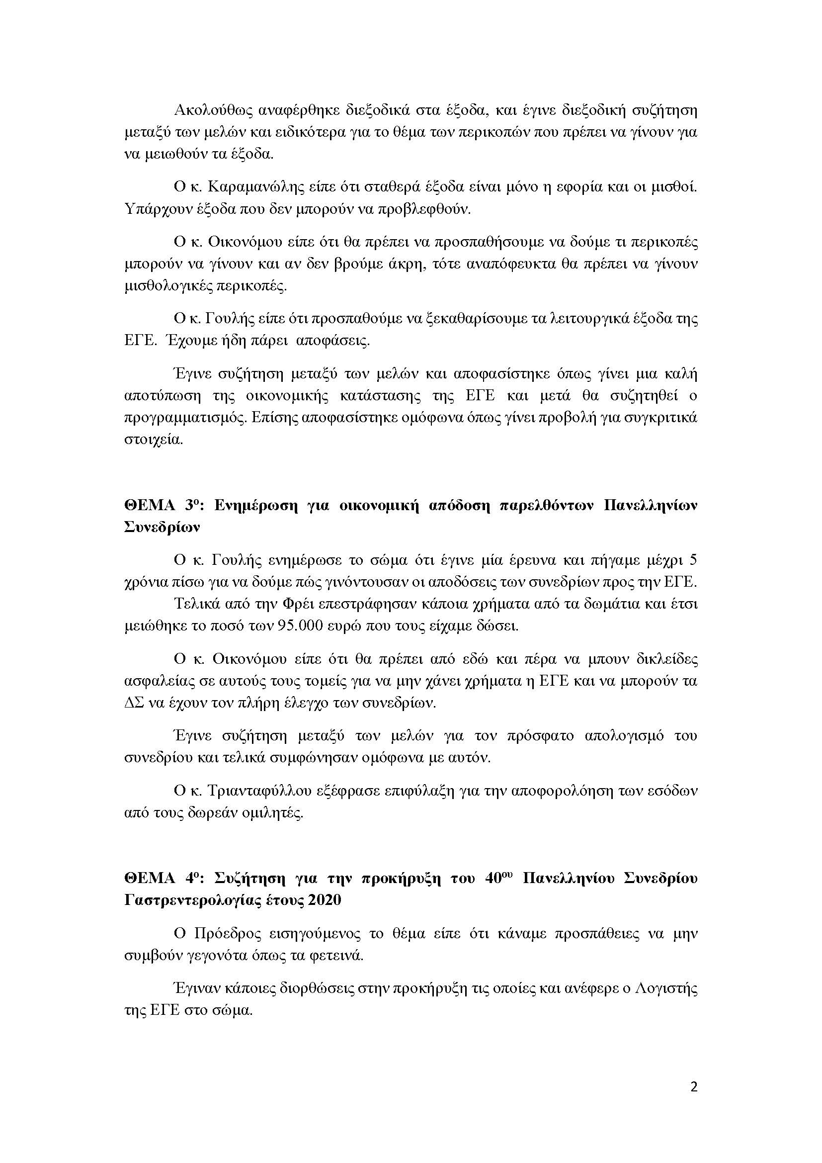 ΘΕΜΑ 4ο: Συζήτηση για την προκήρυξη του 40ου Πανελληνίου Συνεδρίου Γαστρεντερολογίας έτους 2020