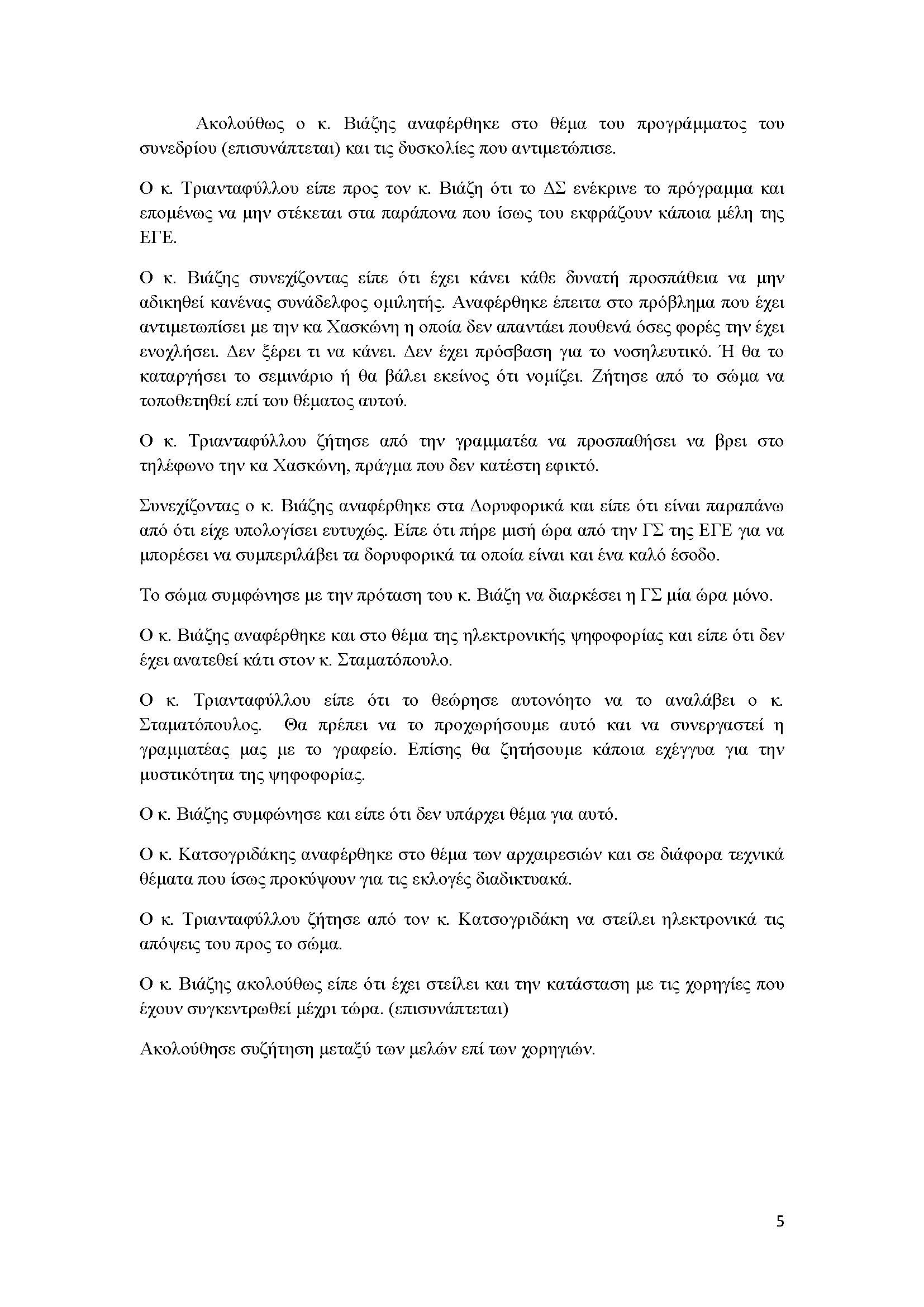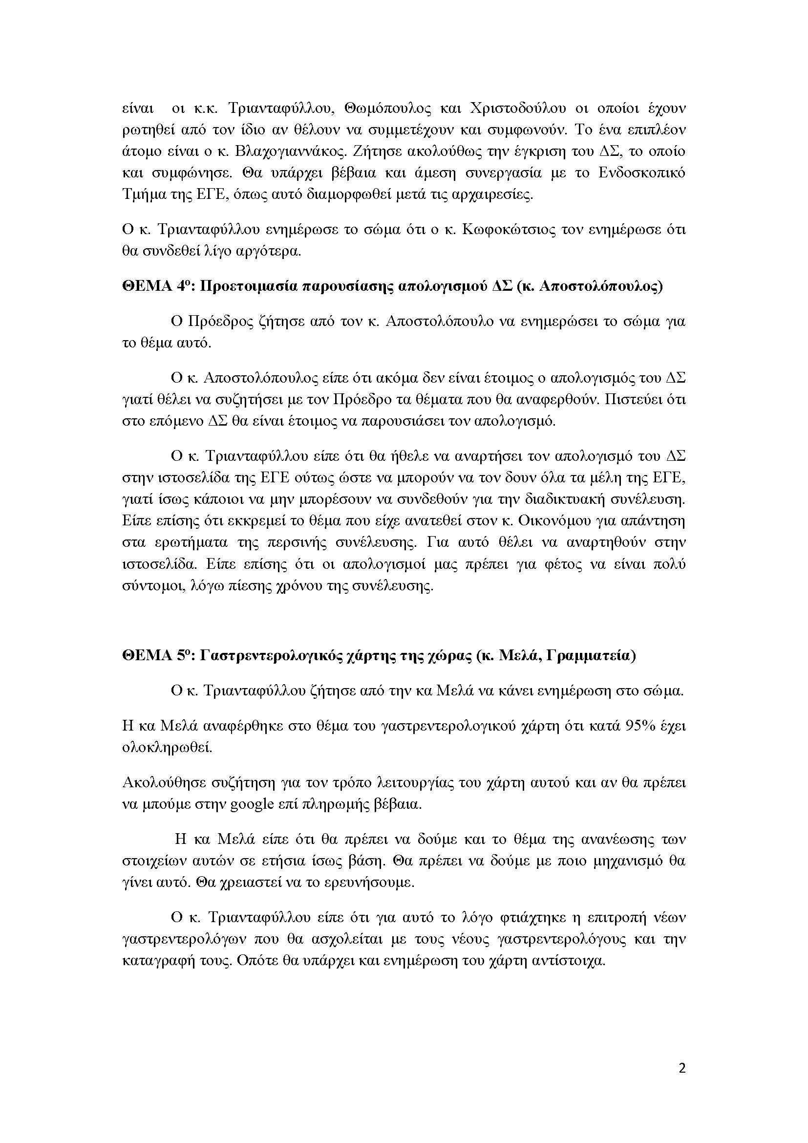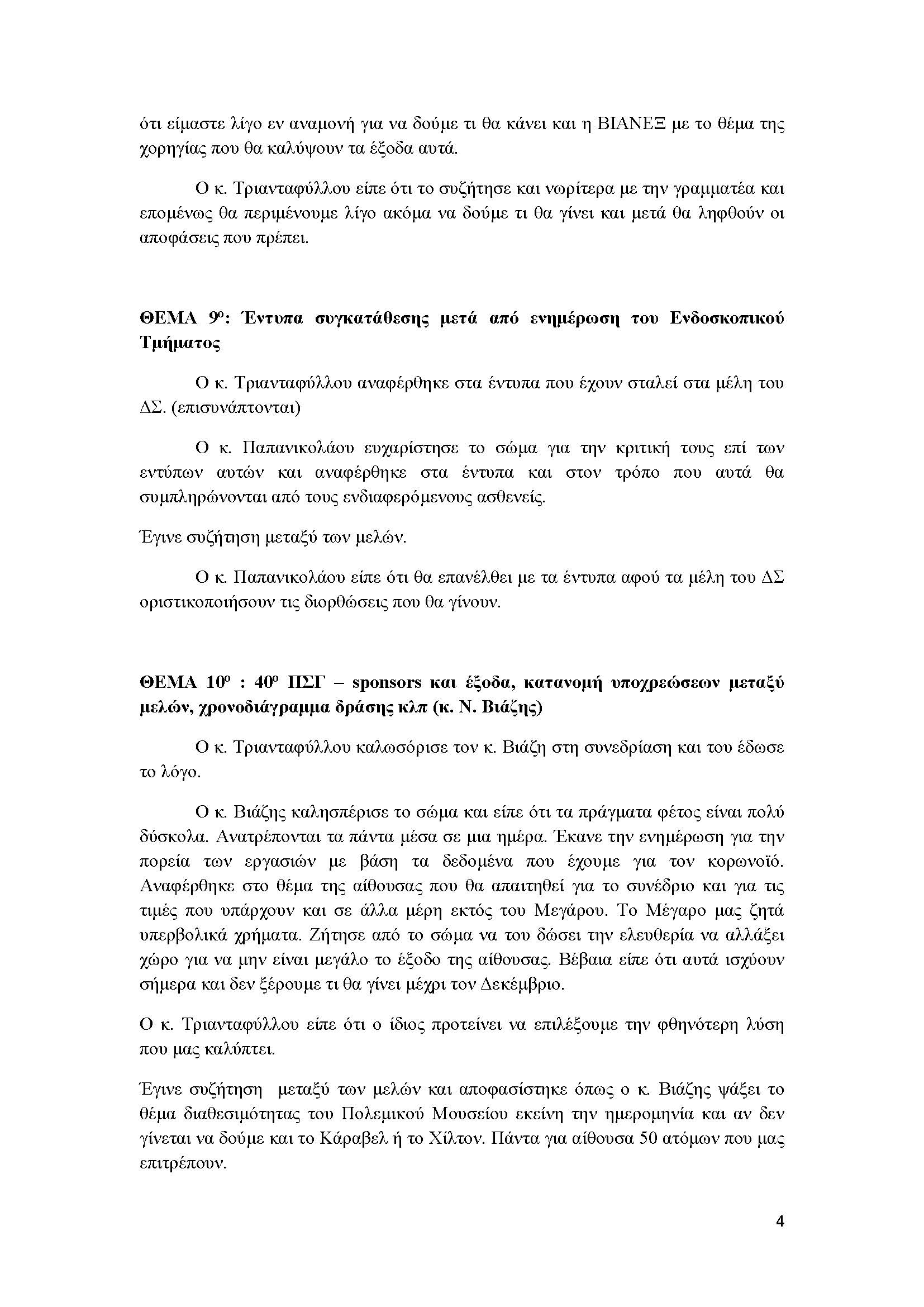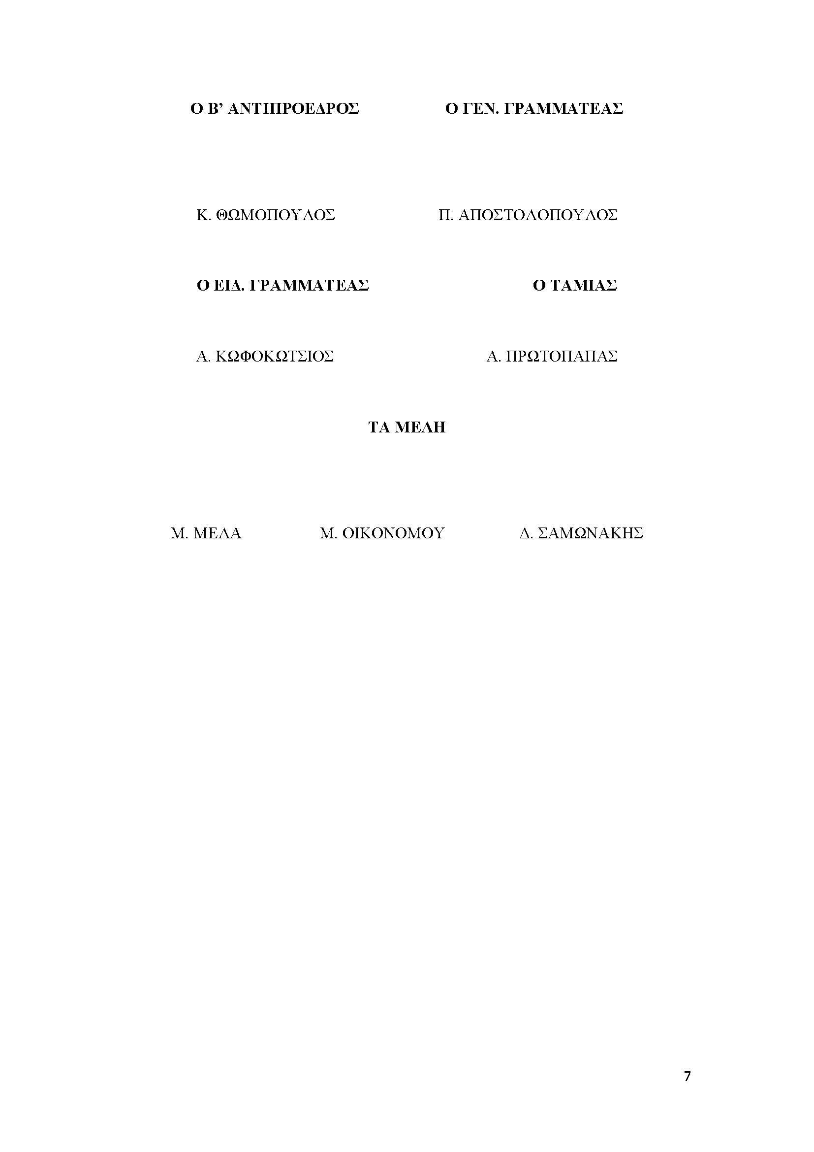 ΠΑΡΟΝΤΕΣ: άπαντα τα μέλη του ΔΣ, καθώς επίσης και οι κ.κ. Ι. Παπανικολάου, Ι. Κατσογριδάκης, Γ. Καραμπέκος, Σ. Μιχόπουλος.