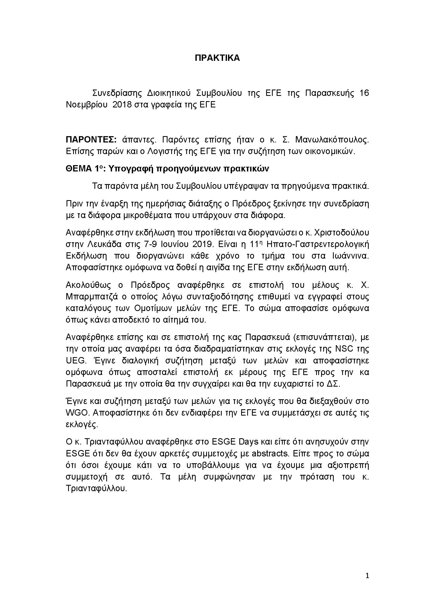 Πρακτικά Συνεδρίασης 16ης Νοεμβρίου 2018