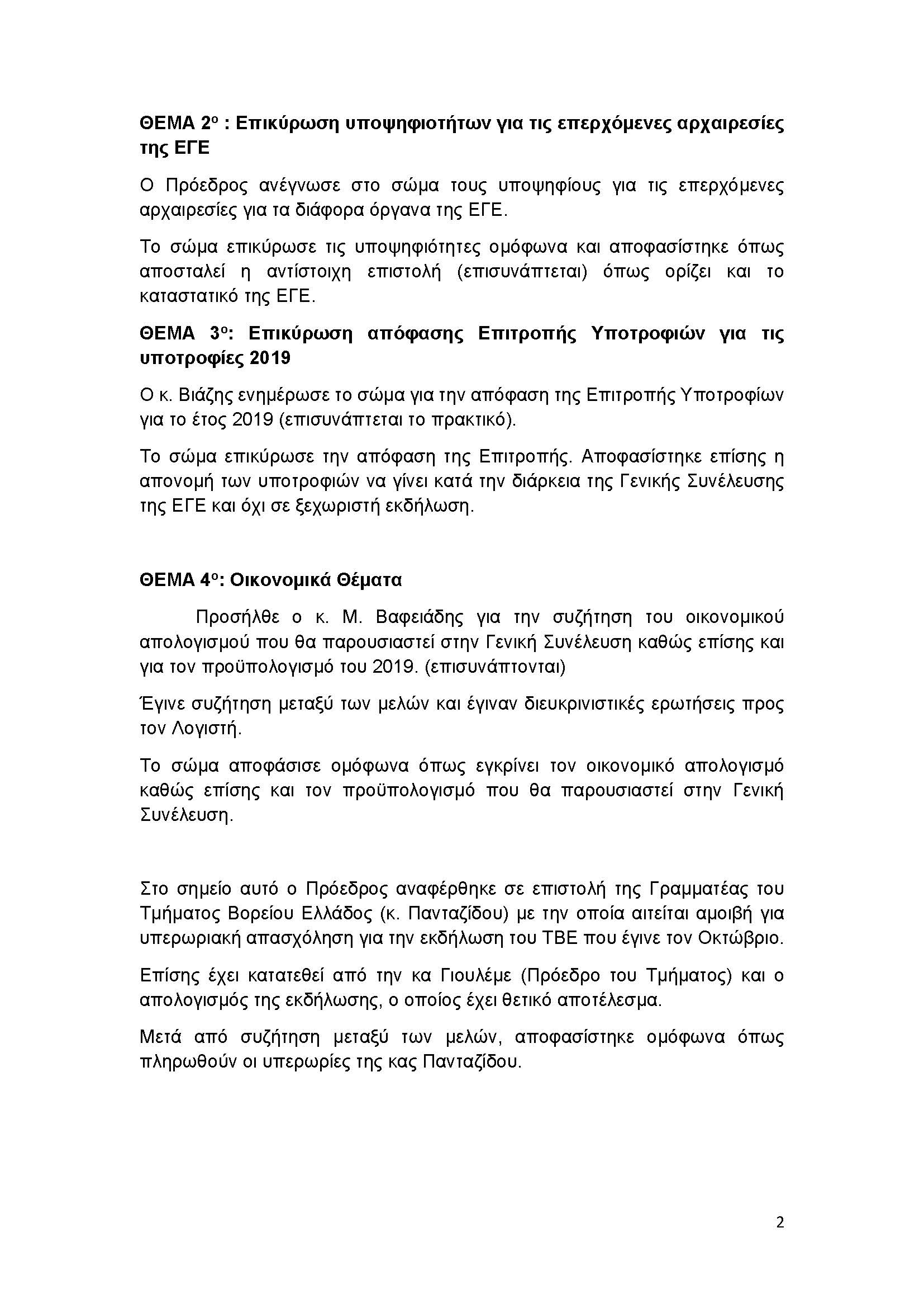 ΠΑΡΟΝΤΕΣ: άπαντες. Παρόντες επίσης ήταν ο κ. Σ. Μανωλακόπουλος. Επίσης παρών και ο Λογιστής της ΕΓΕ για την συζήτηση των οικονομικών.