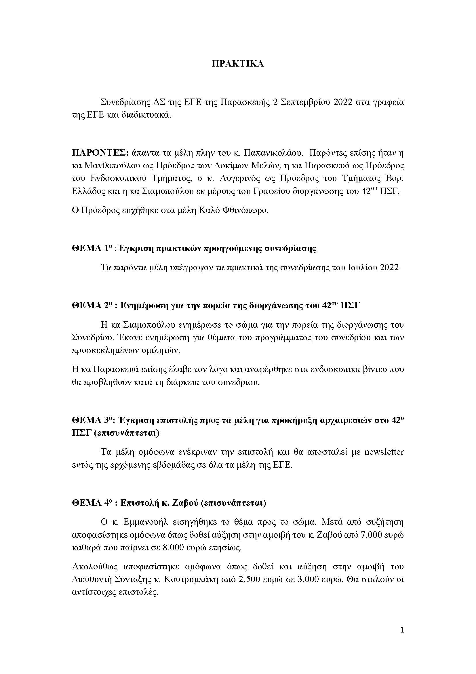 Πρακτικά Διαδικτυακής και Δια Ζώσης Συνεδρίασης 2ας Σεπτεμβρίου 2022