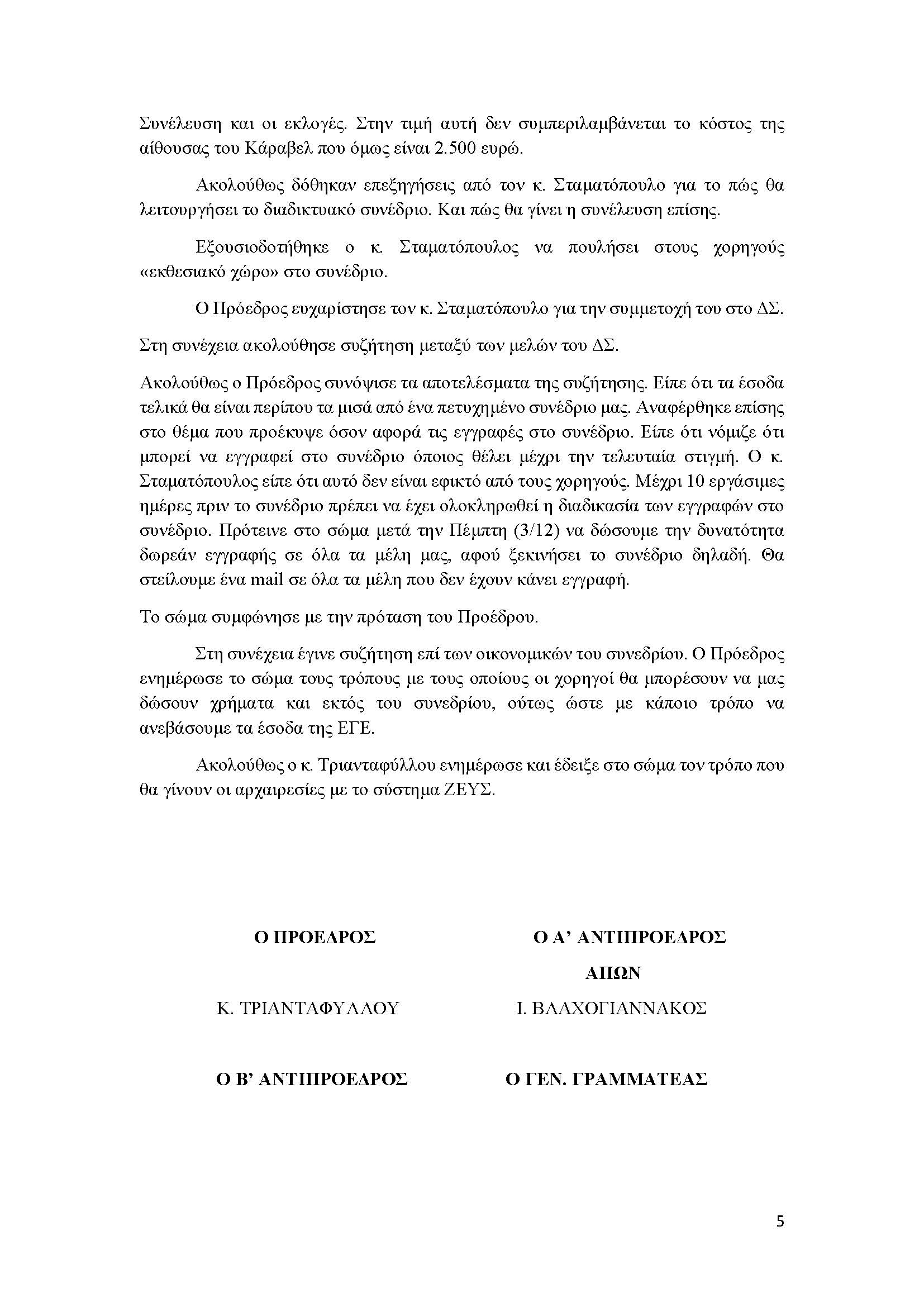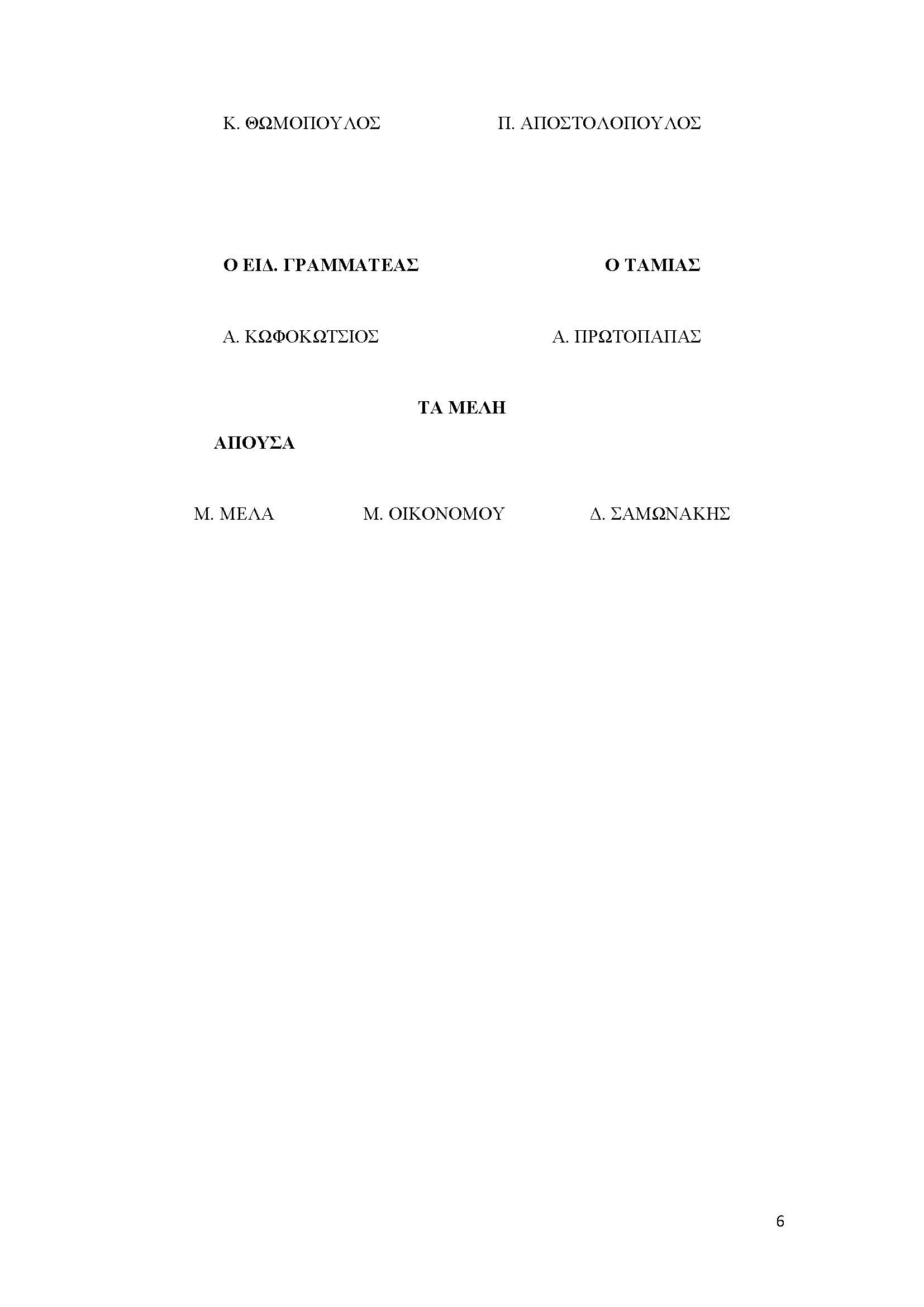 ΠΑΡΟΝΤΕΣ: άπαντες πλην της κας Μελά. Παρόντες επίσης οι κ.κ. Ν. Βιάζης, Σ. Σταματόπουλος, Δ. Χριστοδούλου, Ι. Παπανικολάου.