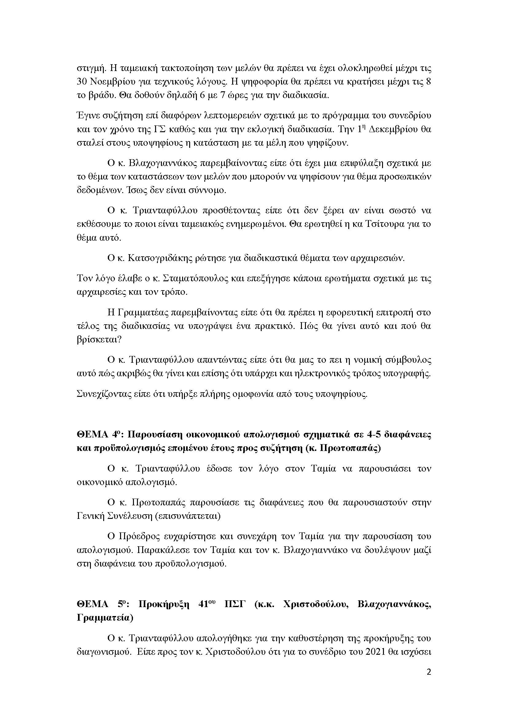 Πρακτικά Διαδικτυακής Συνεδρίασης 20ης Νοεμβρίου 2020