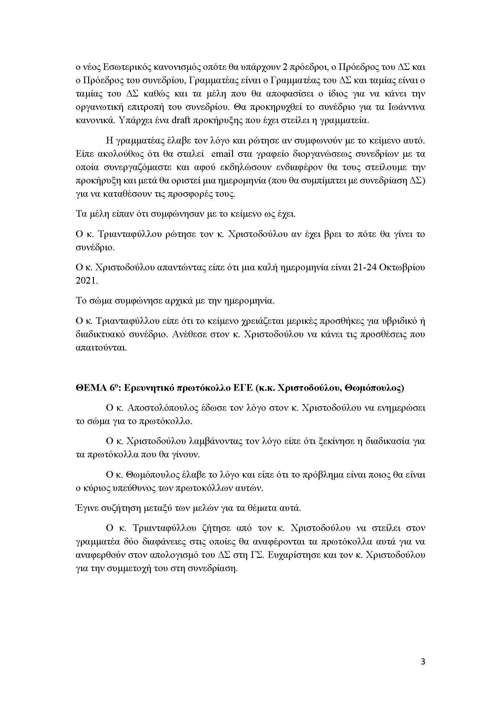 ΘΕΜΑ 3ο: Προετοιμασία αρχαιρεσιών (Π. Αποστολόπουλος, Σ. Σταματόπουλος, Κ. Τριανταφύλλου, Γραμματεία)