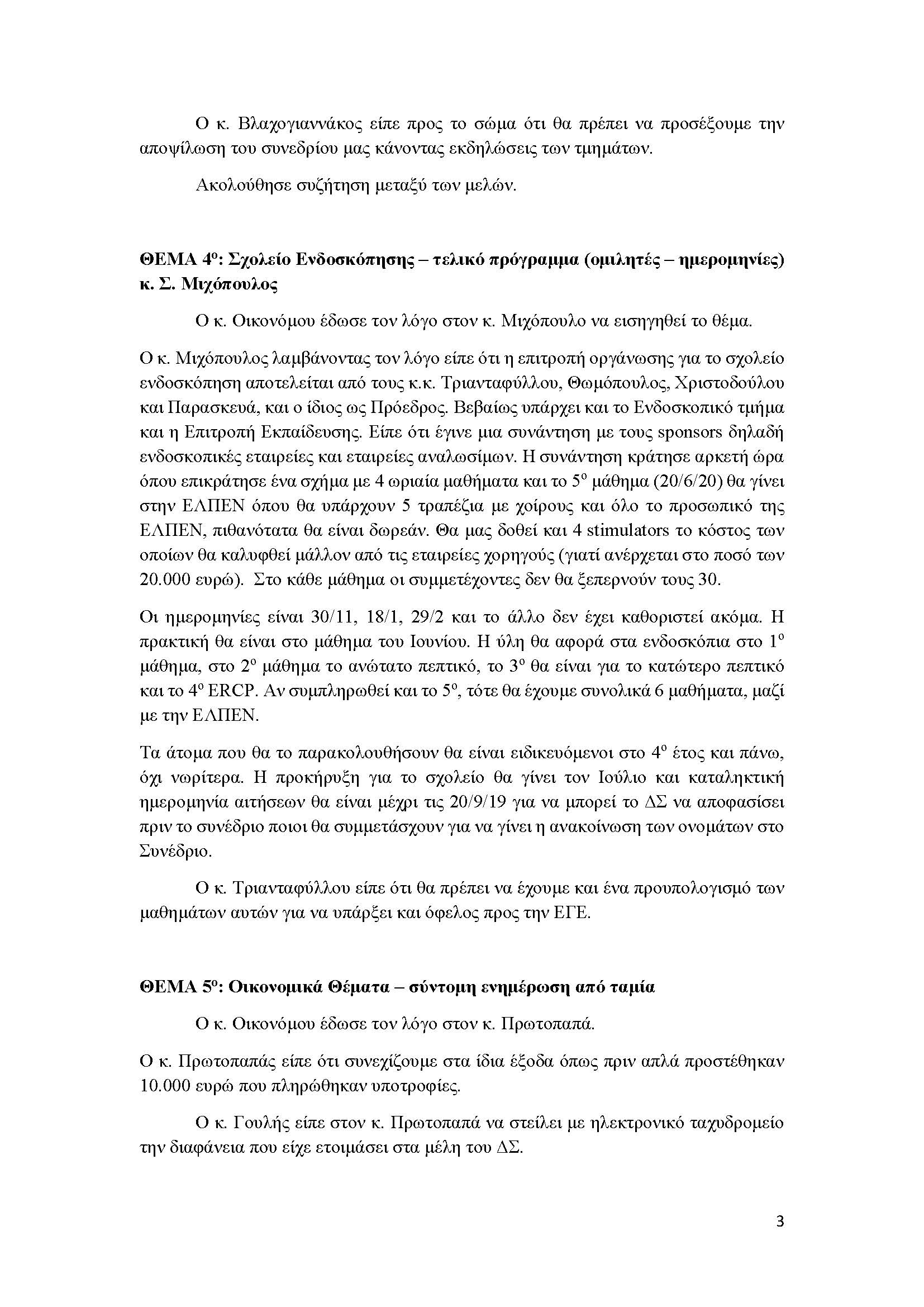 Πρακτικά Συνεδρίασης 17ης Ιουλίου 2019