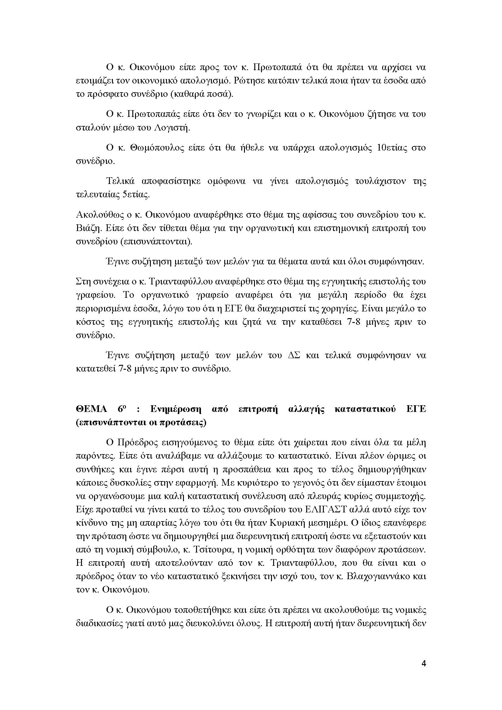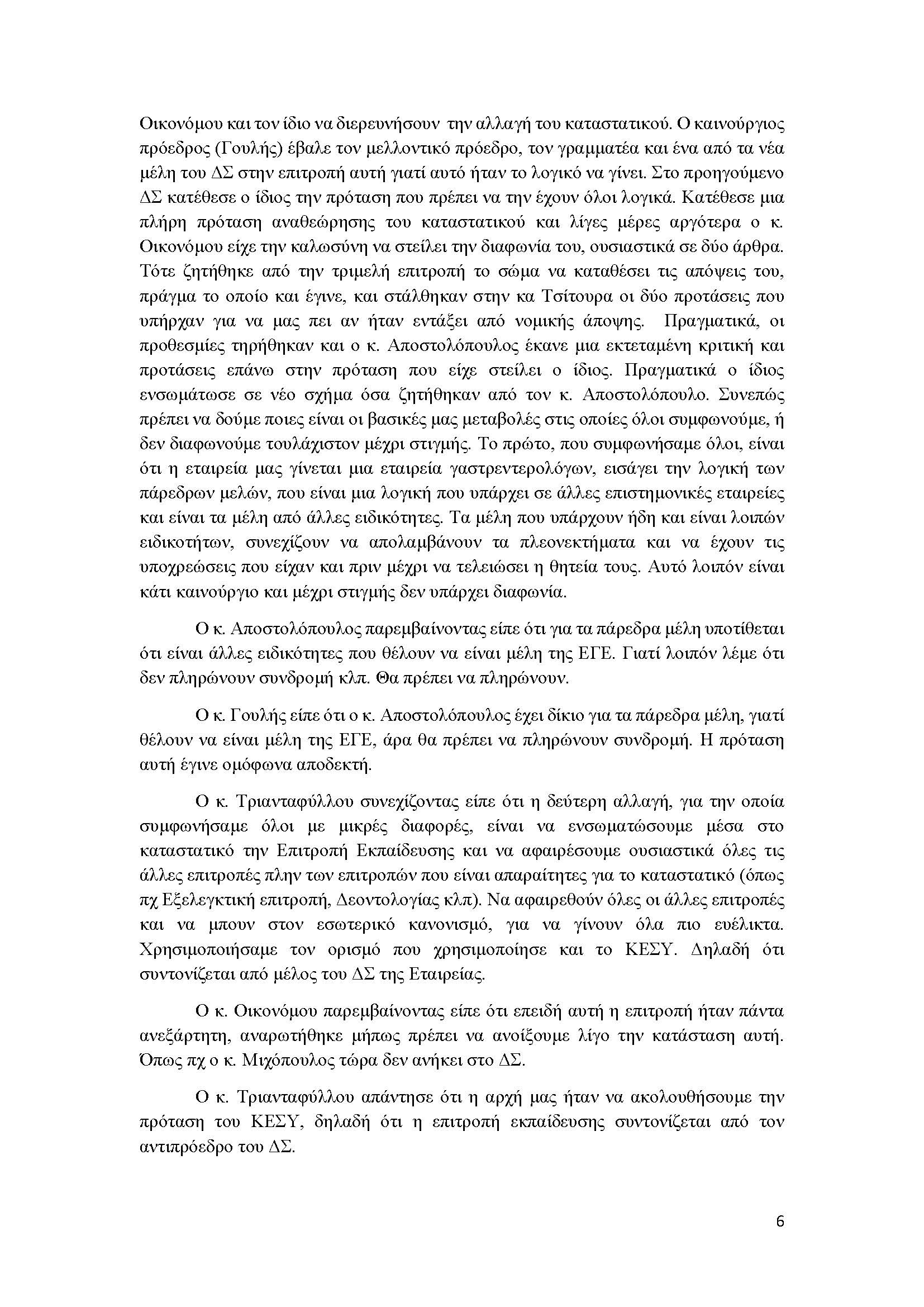 ΘΕΜΑ 6ο : Ενημέρωση από επιτροπή αλλαγής καταστατικού ΕΓΕ
