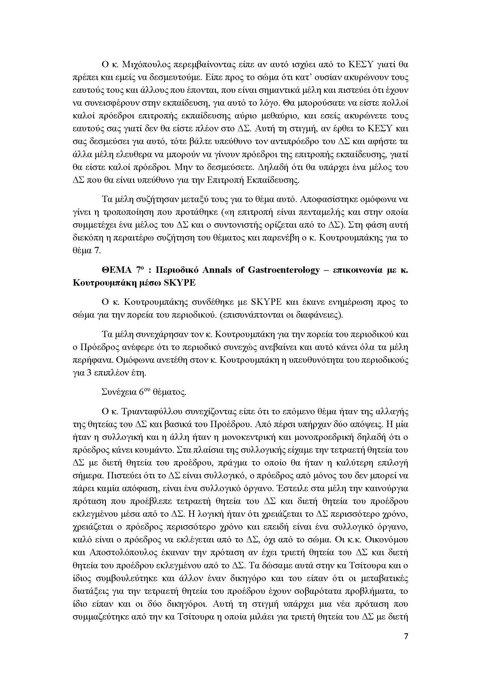 ΘΕΜΑ 7ο : Περιοδικό Annals of Gastroenterology – επικοινωνία με κ. Κουτρουμπάκη μέσω SKYPE