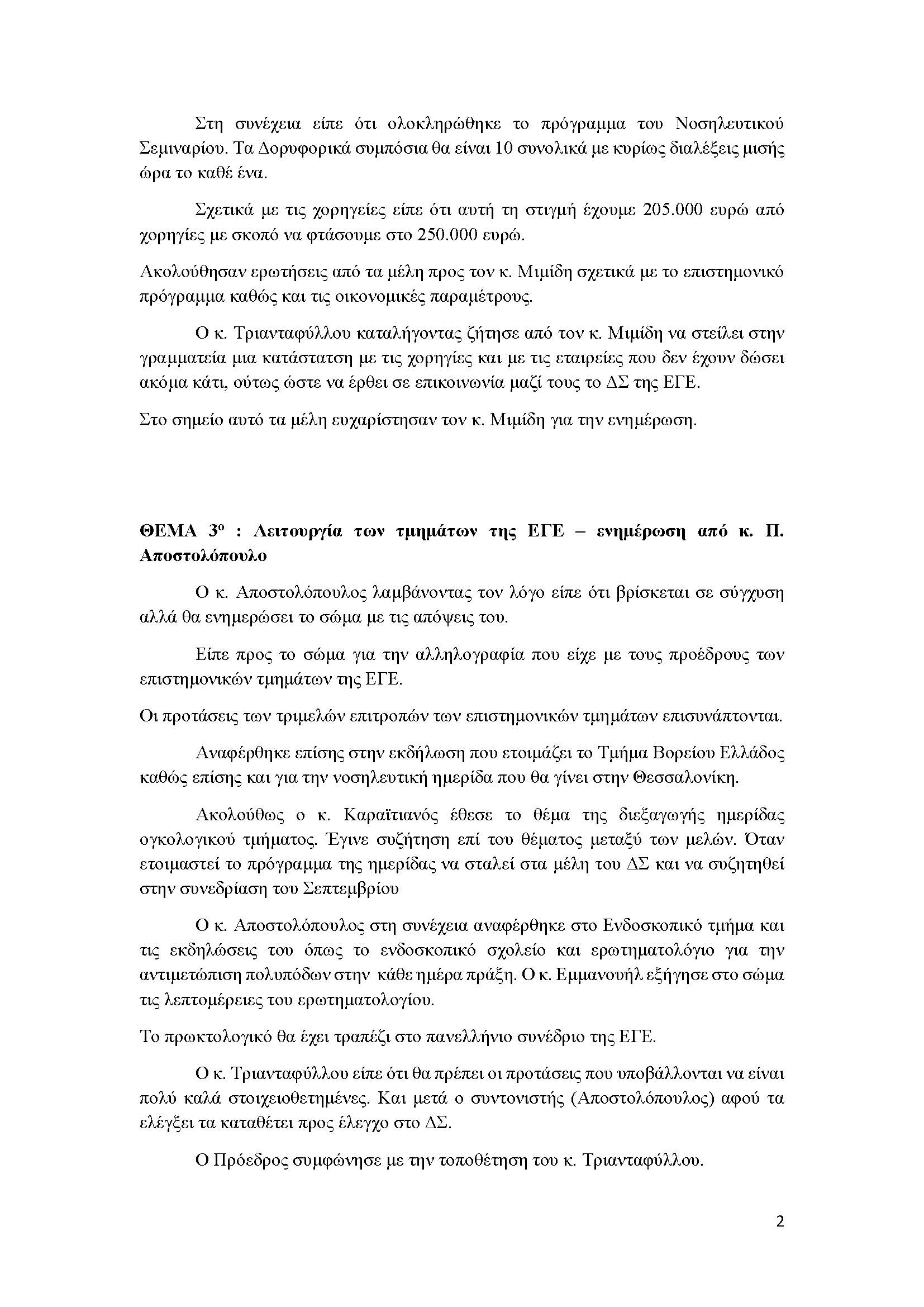 ΘΕΜΑ 3ο : Λειτουργία των τμημάτων της ΕΓΕ – ενημέρωση από κ. Π. Αποστολόπουλο