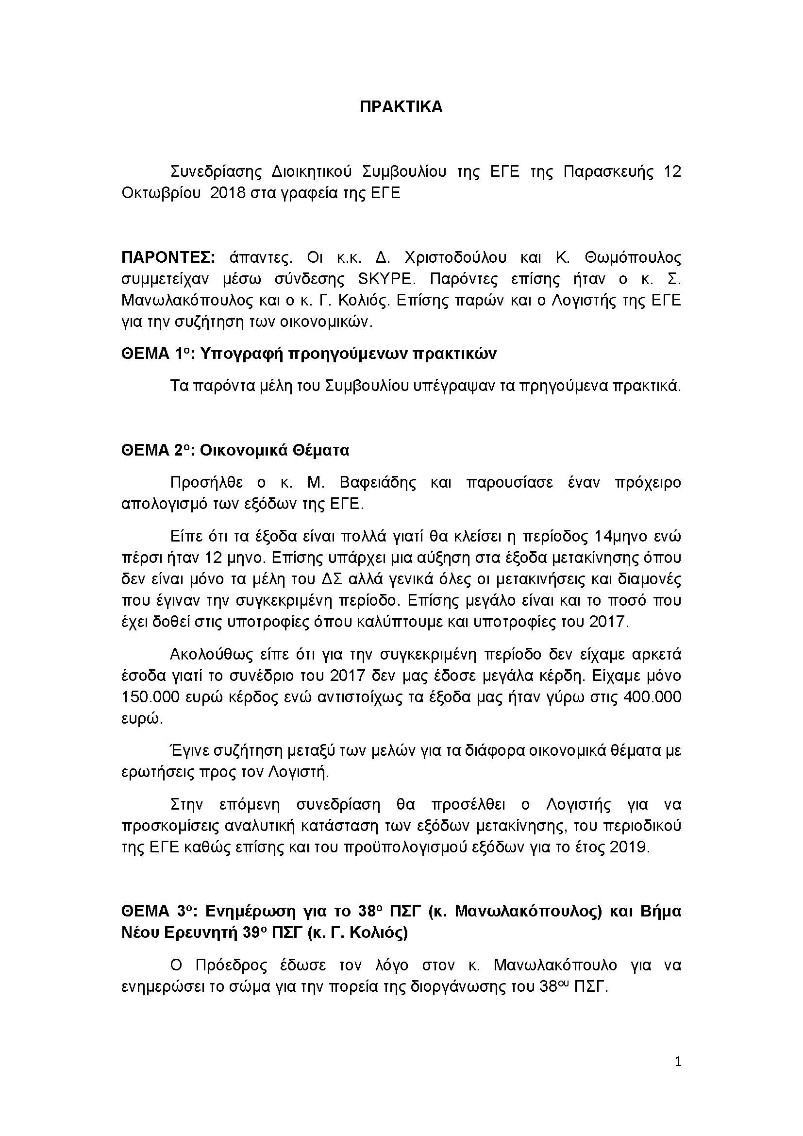 Πρακτικά Συνεδρίασης 12ης Οκτωβρίου 2018