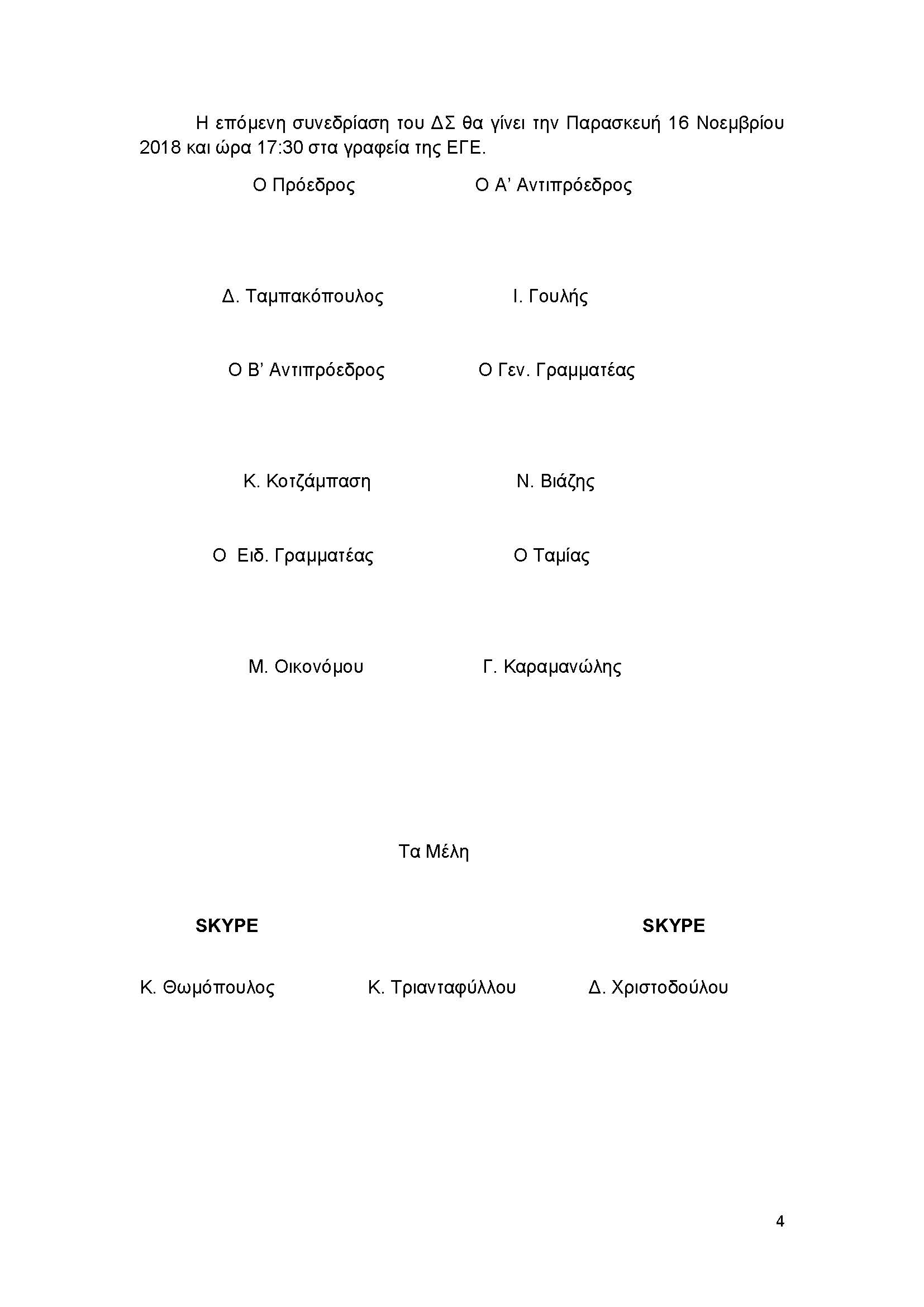 ΠΑΡΟΝΤΕΣ: άπαντες. Οι κ.κ. Δ. Χριστοδούλου και Κ. Θωμόπουλος συμμετείχαν μέσω σύνδεσης SKYPE. Παρόντες επίσης ήταν ο κ. Σ. Μανωλακόπουλος και ο κ. Γ. Κολιός. Επίσης παρών και ο Λογιστής της ΕΓΕ για την συζήτηση των οικονομικών.