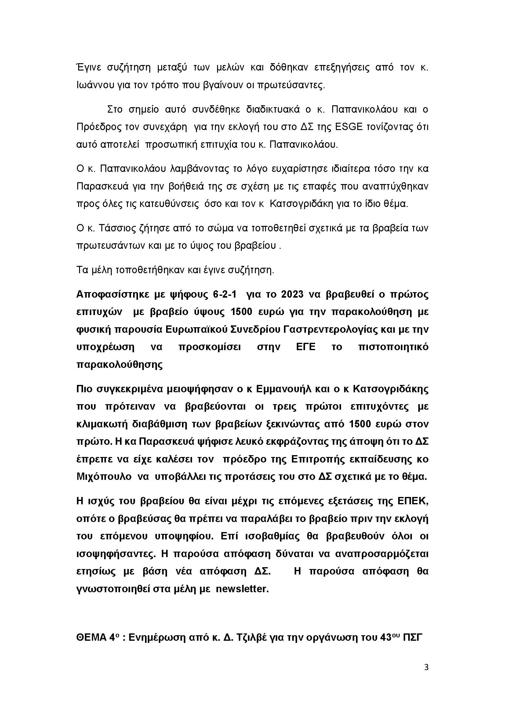 ΠΑΡΟΝΤΕΣ: άπαντα τα μέλη του ΔΣ. Ο κ. Τριάντος, η κα Χρηστίδου, ο κ. Παπανικολάου και η κα Μπομπότση συμμετείχαν διαδικτυακά. Επίσης παρόντες οι κ.κ. Α. Ιωάννου ως Πρόεδρος της Επιτροπής Δοκίμων Μελών.