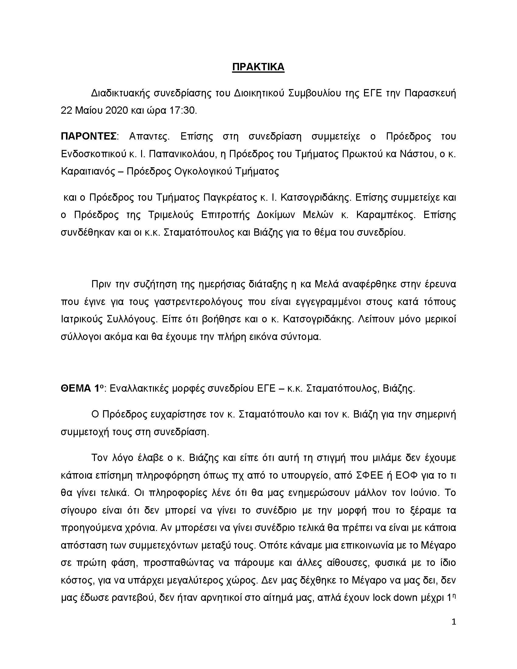 Πρακτικά Διαδικτυακής Συνεδρίασης 22ας Μαΐου 2020
