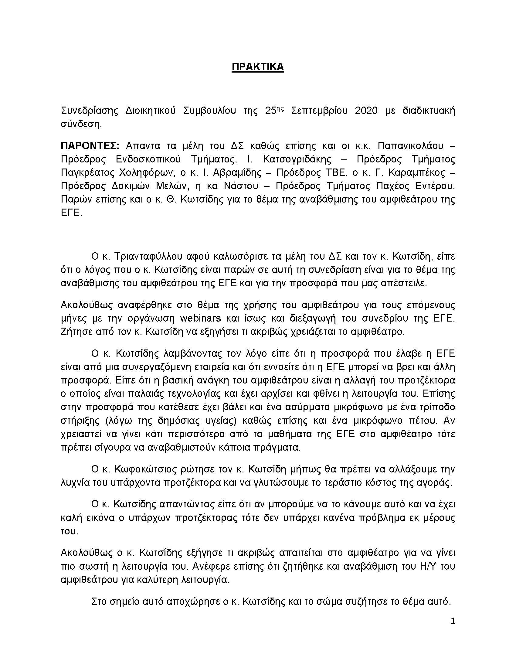 Πρακτικά Διαδικτυακής Συνεδρίασης 25ης Σεπτεμβρίου 2020