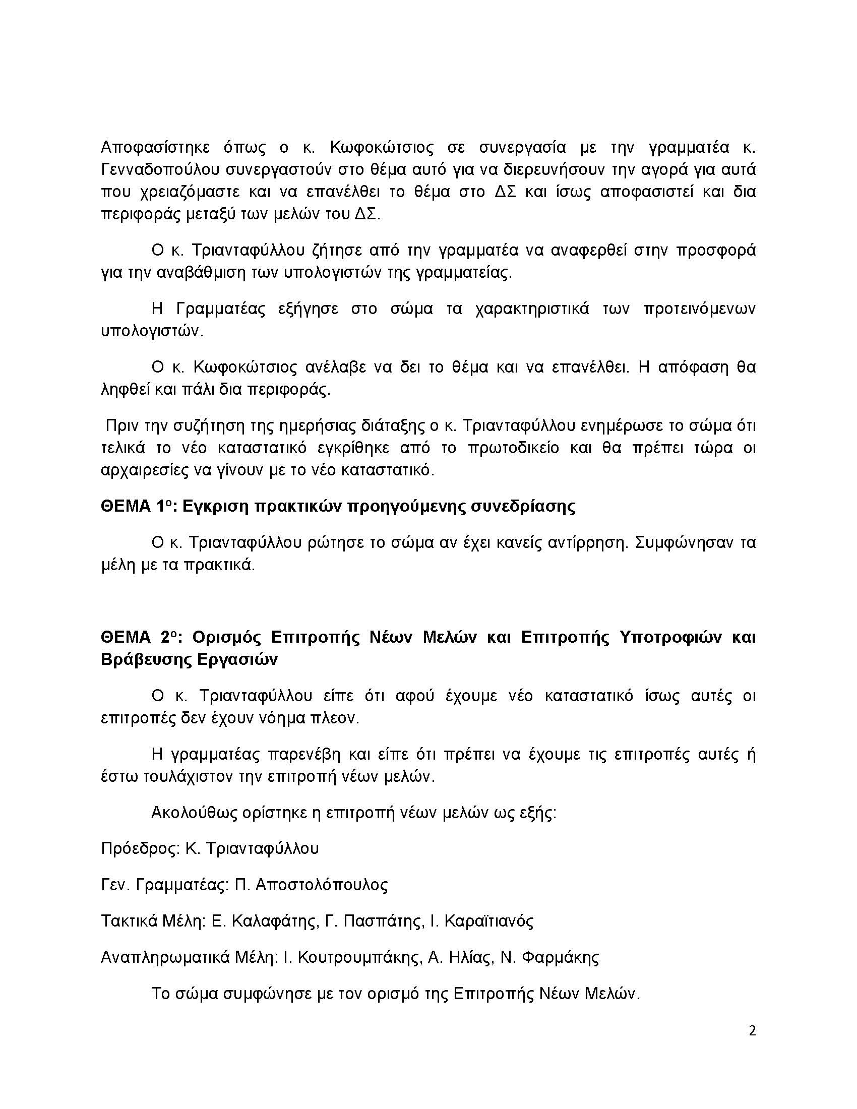 ΘΕΜΑ 1ο: Έγκριση πρακτικών προηγούμενης συνεδρίασης