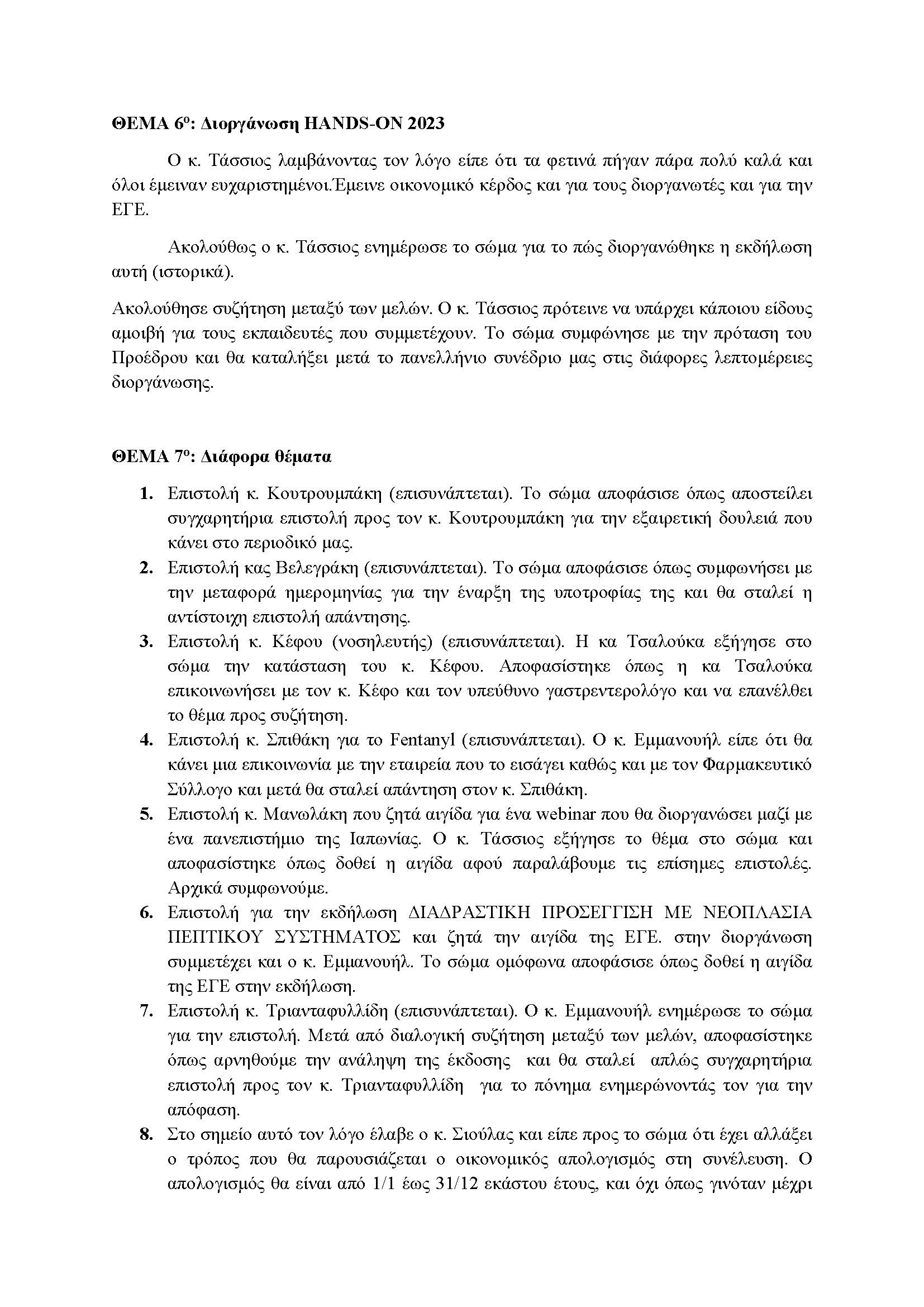 ΘΕΜΑ 6ο: Διοργάνωση HANDS-ON 2023