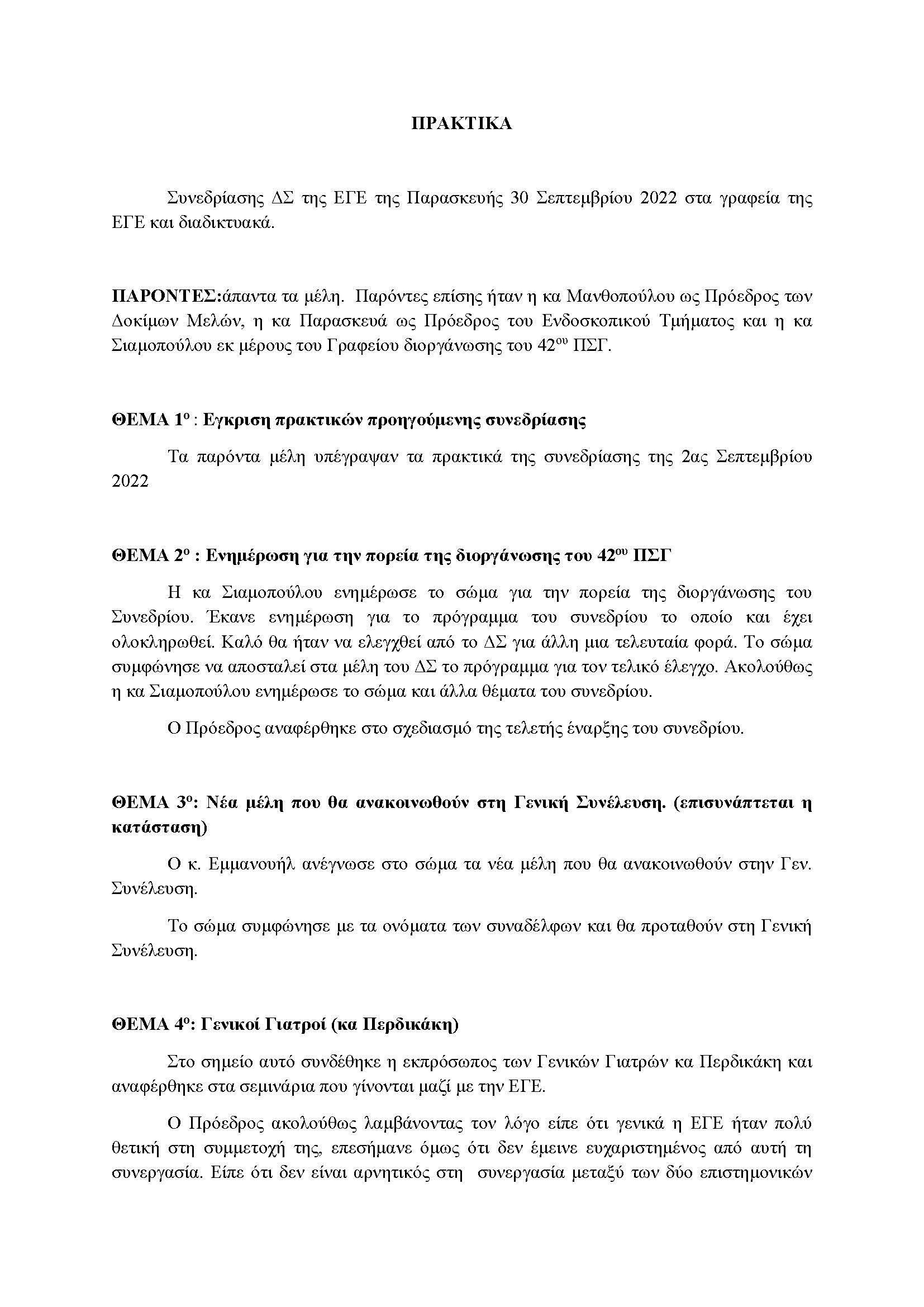 Πρακτικά Διαδικτυακής και Δια Ζώσης Συνεδρίασης 30ης Σεπτεμβρίου 2022