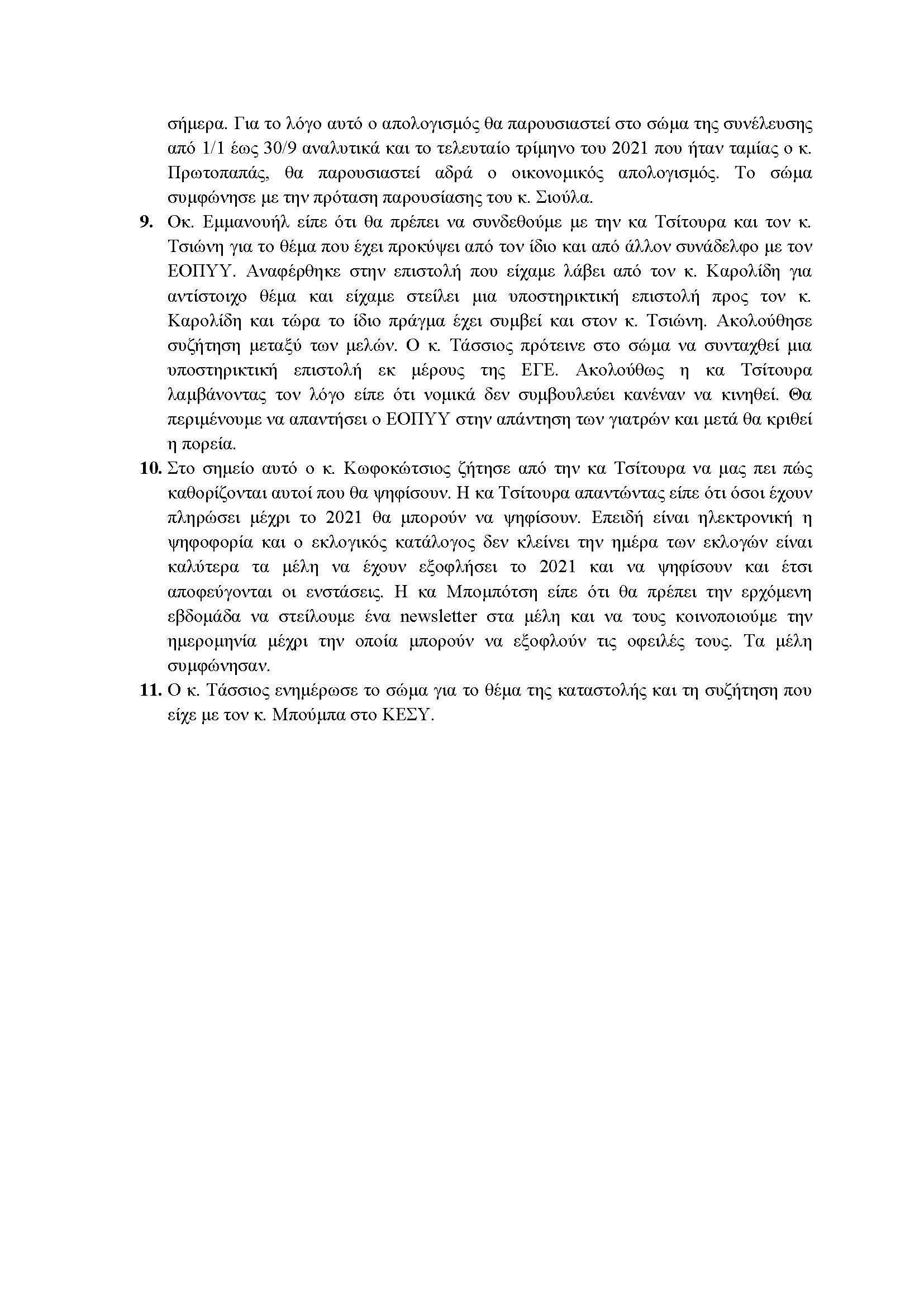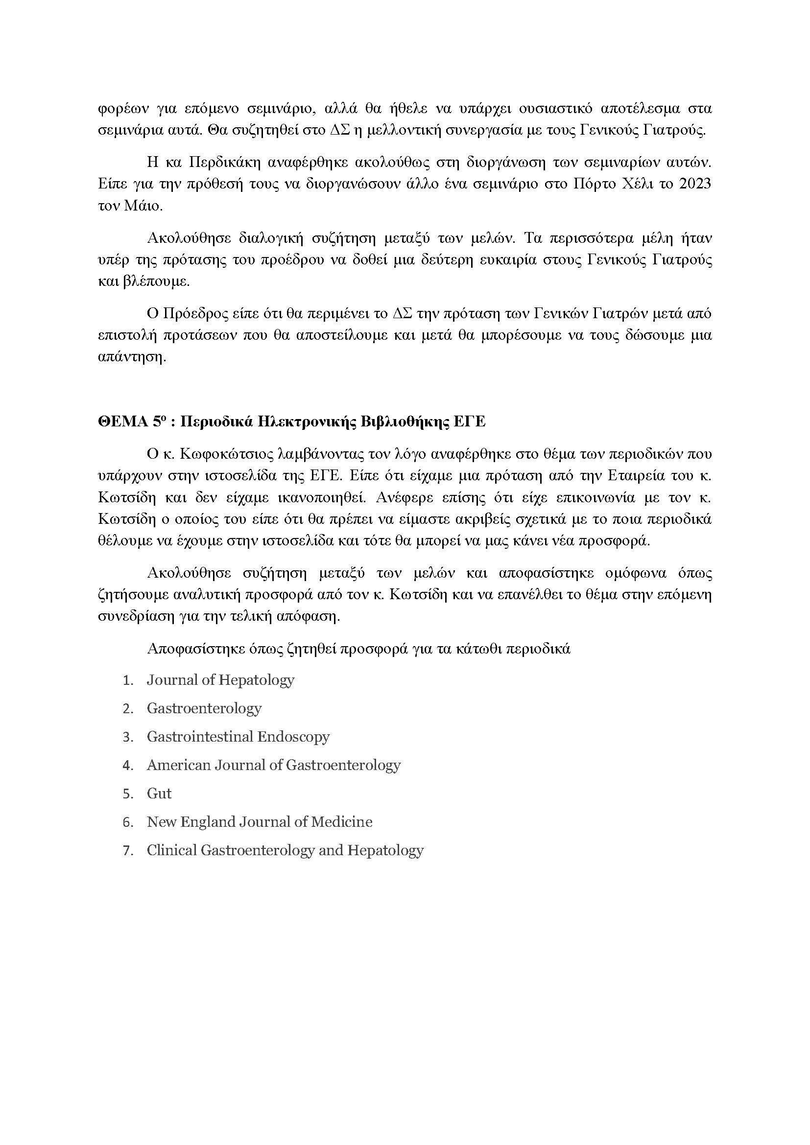 ΠΑΡΟΝΤΕΣ: άπαντα τα μέλη. Παρόντες επίσης ήταν η κα Μανθοπούλου ως Πρόεδρος των Δοκίμων Μελών, η κα Παρασκευά ως Πρόεδρος του Ενδοσκοπικού Τμήματος και η κα Σιαμοπούλου εκ μέρους του Γραφείου διοργάνωσης του 42ου ΠΣΓ.