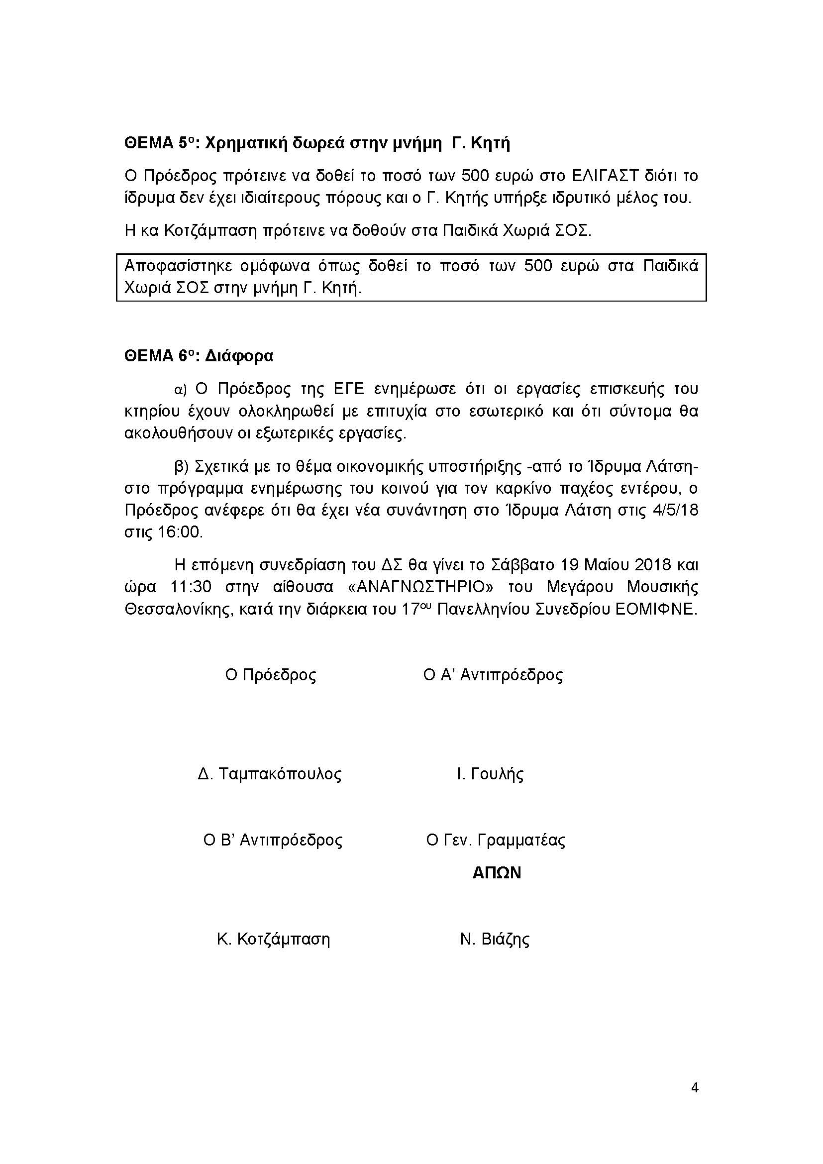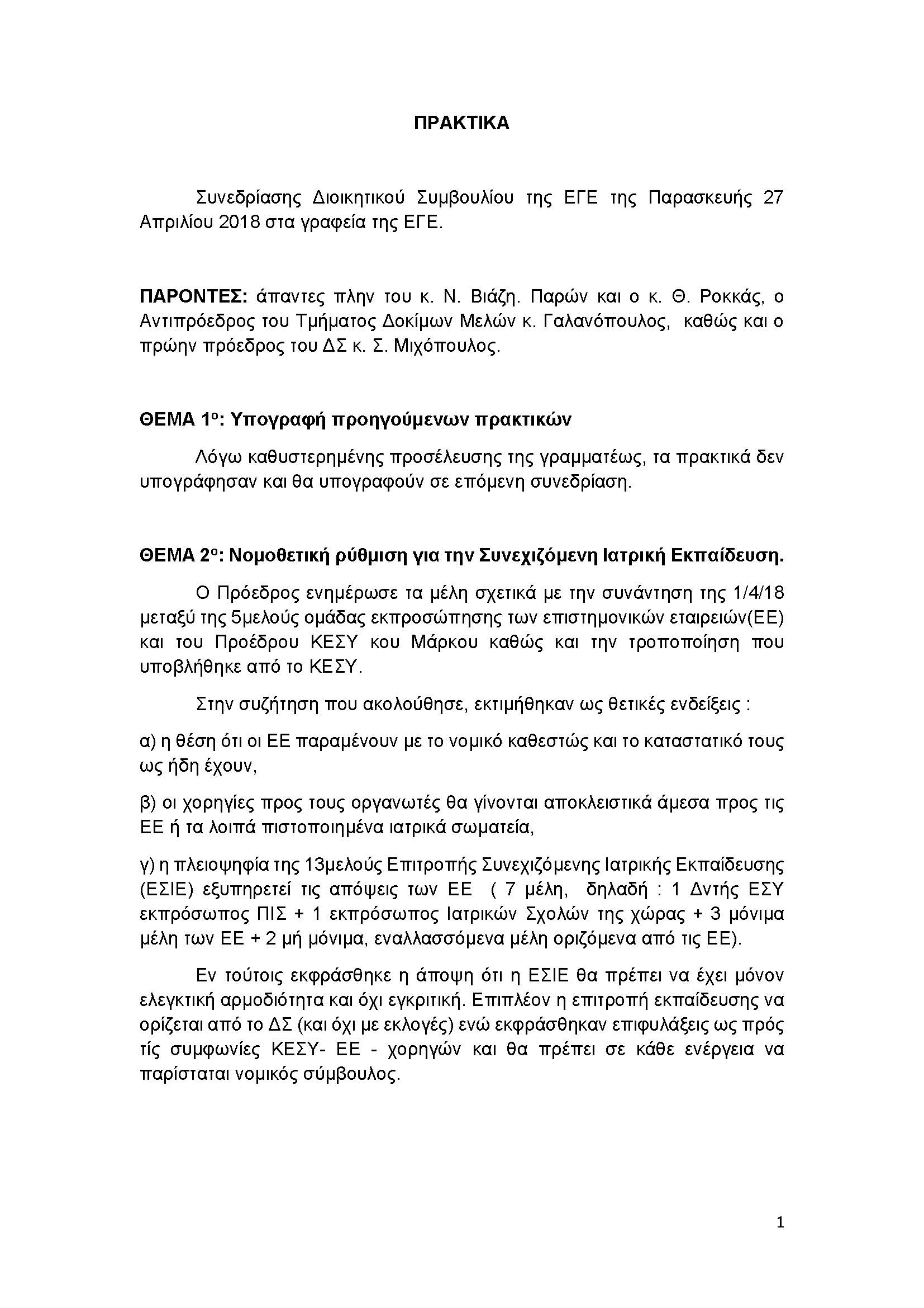 Πρακτικά Συνεδρίασης 27ης Απριλίου 2018