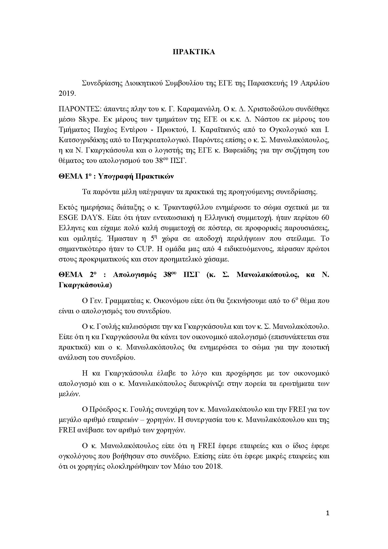 Πρακτικά Συνεδρίασης 19ης Απριλίου 2019