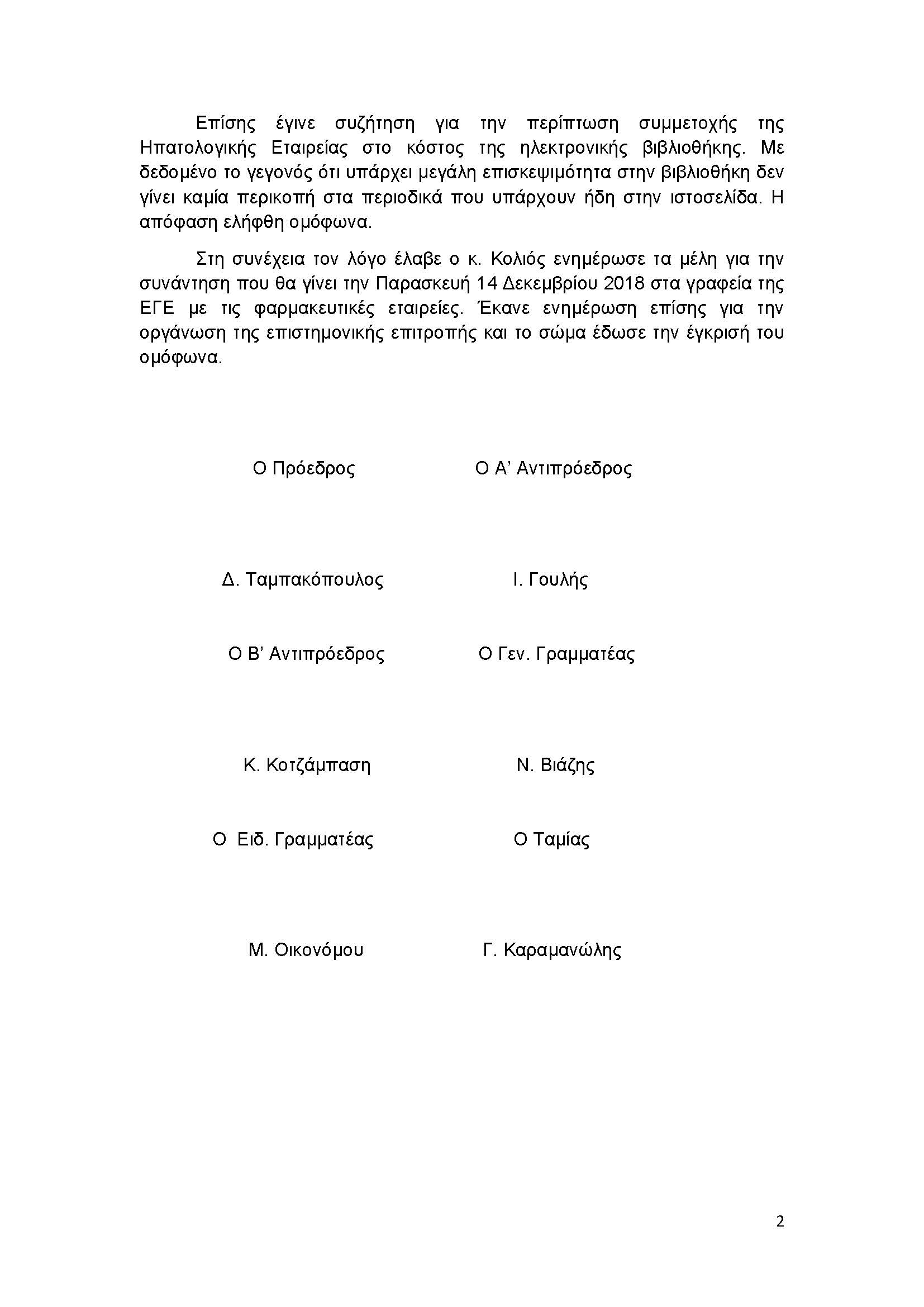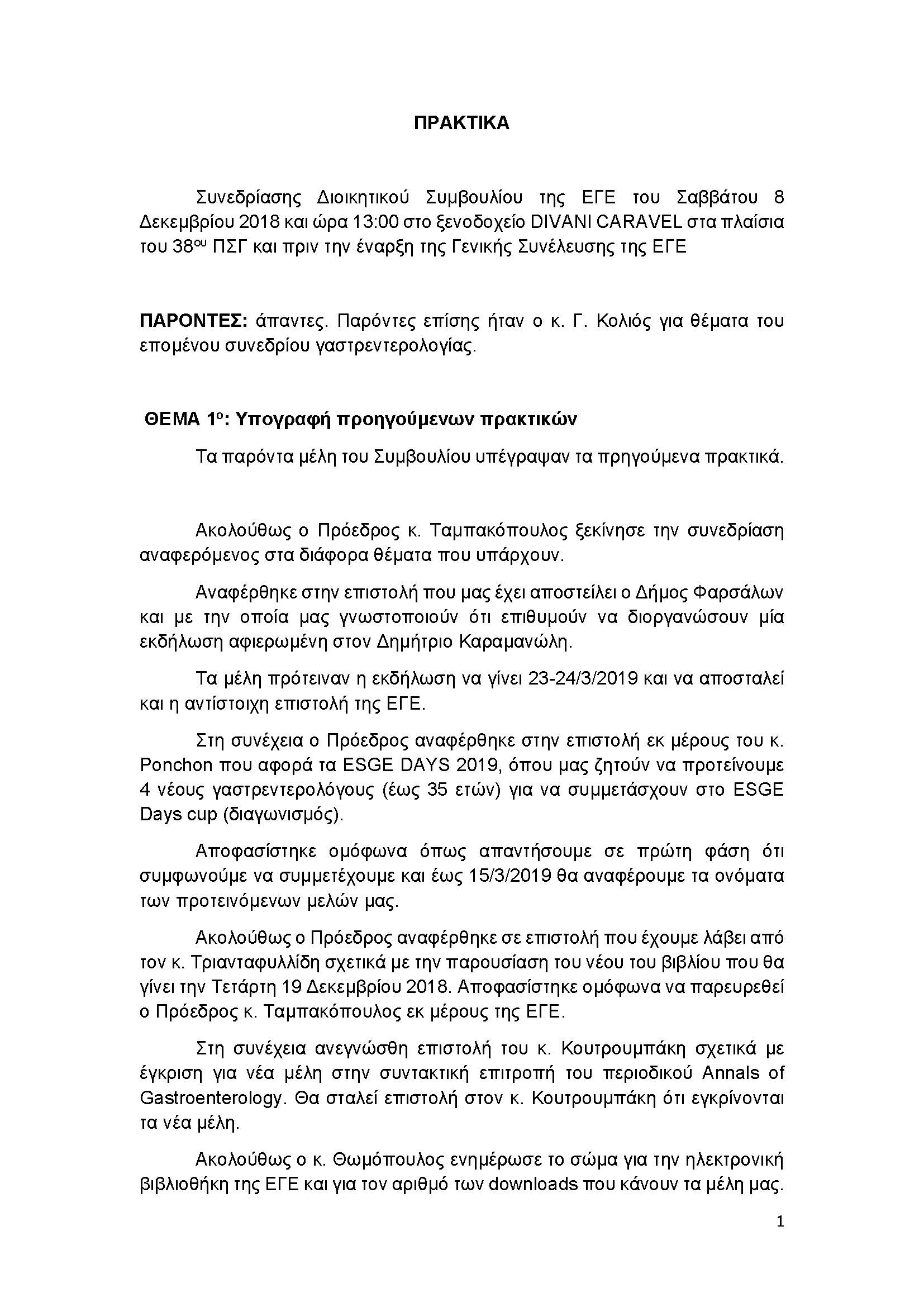 Πρακτικά Συνεδρίασης 8ης Δεκεμβρίου 2018 στα πλαίσια του 38ου ΠΣΓ