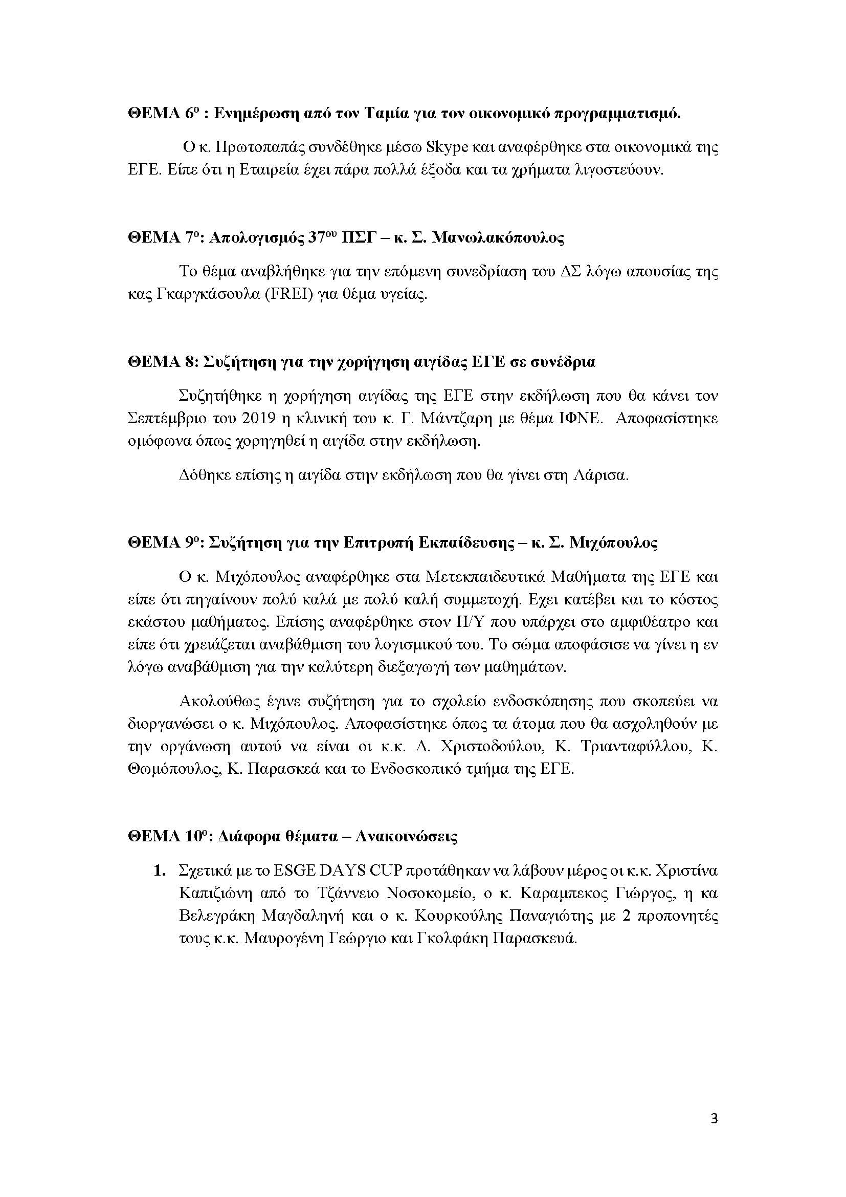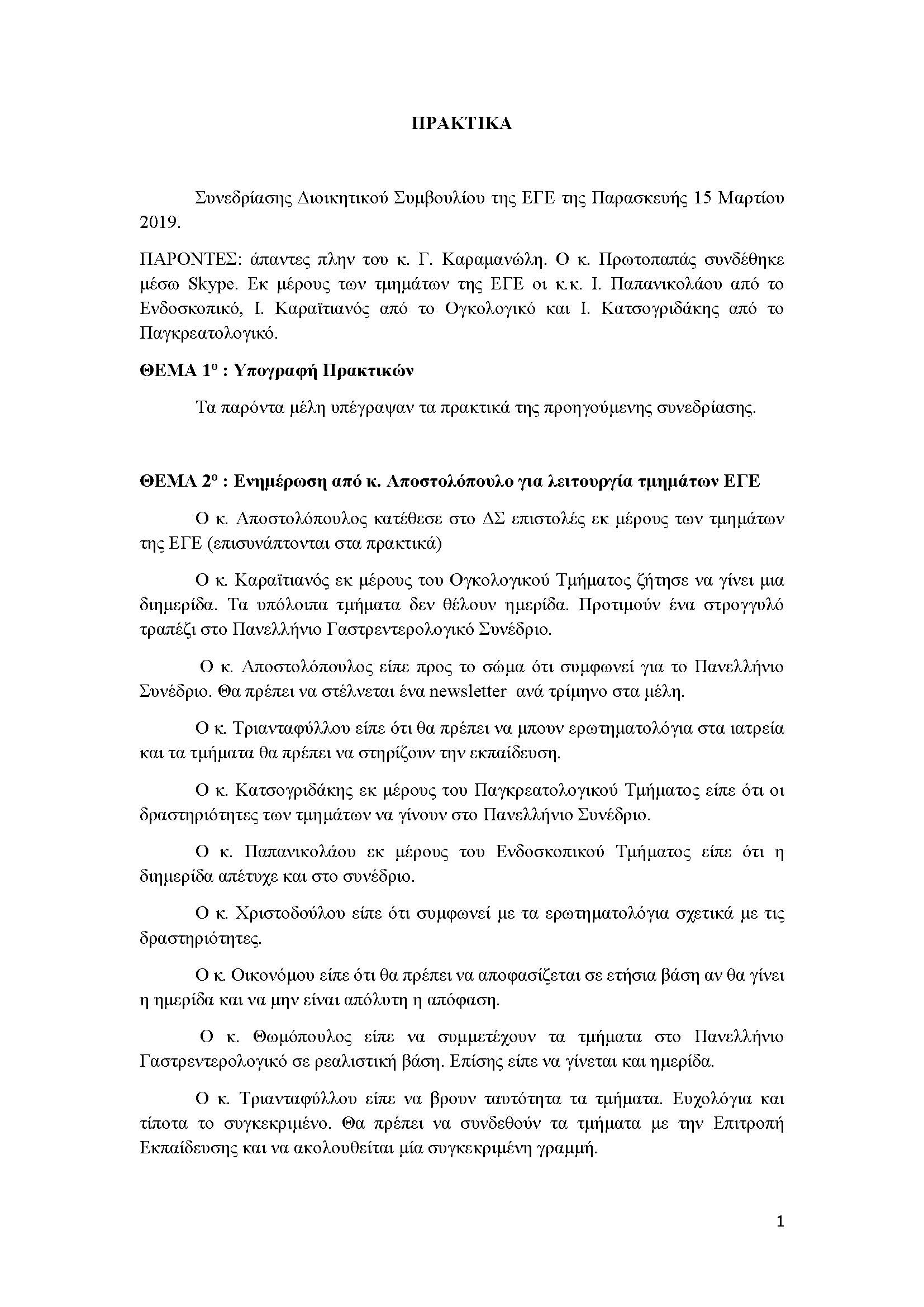 Πρακτικά Συνεδρίασης 15ης Μαρτίου 2019